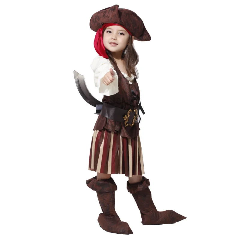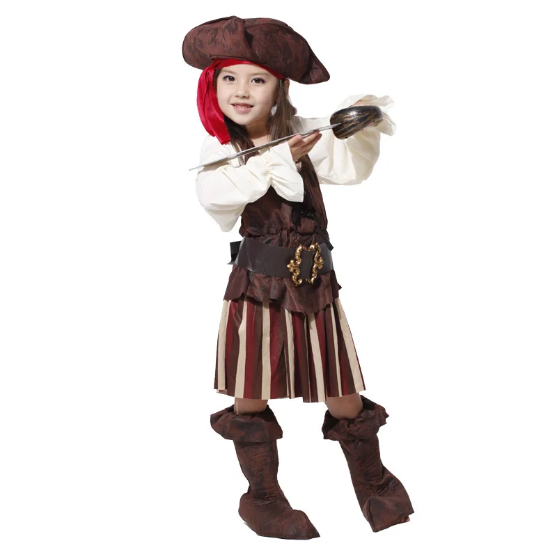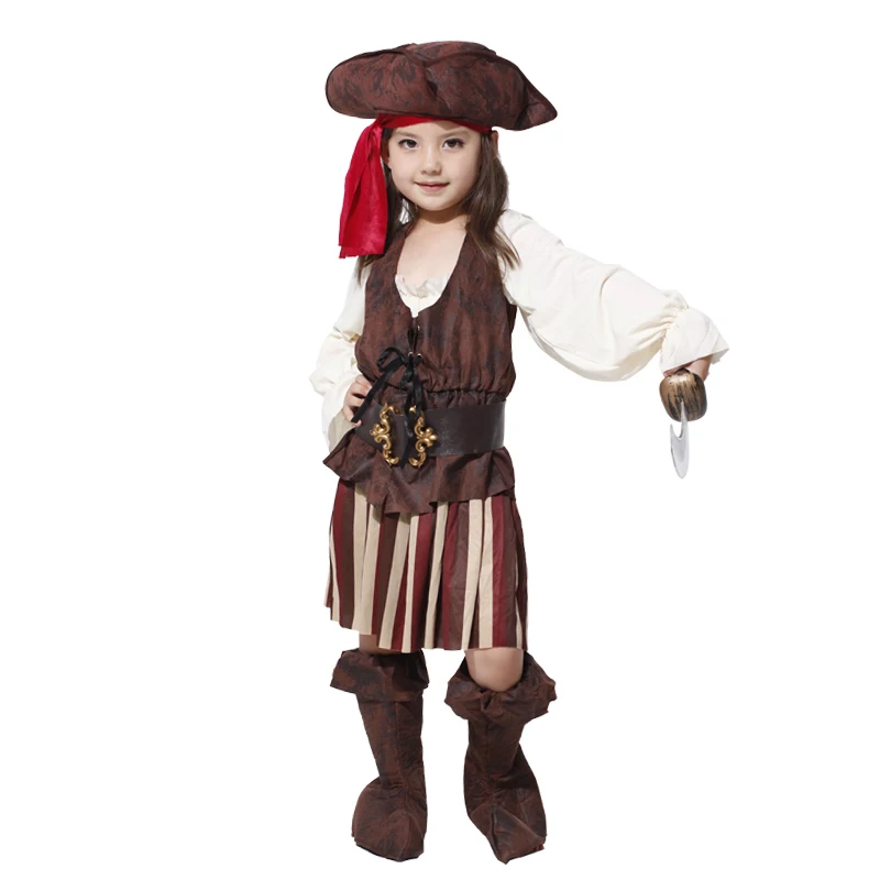 Новогодний костюм на Хэллоуин для девочек, костюм пирата, капитана Джека, костюм Джека Воробья, шляпа, детское платье для косплея пиратов Карибского моря
