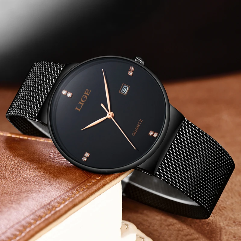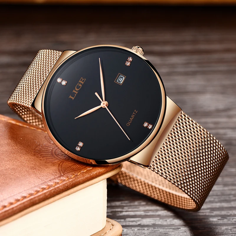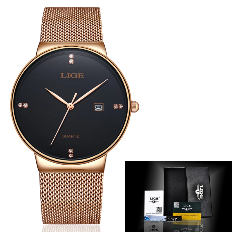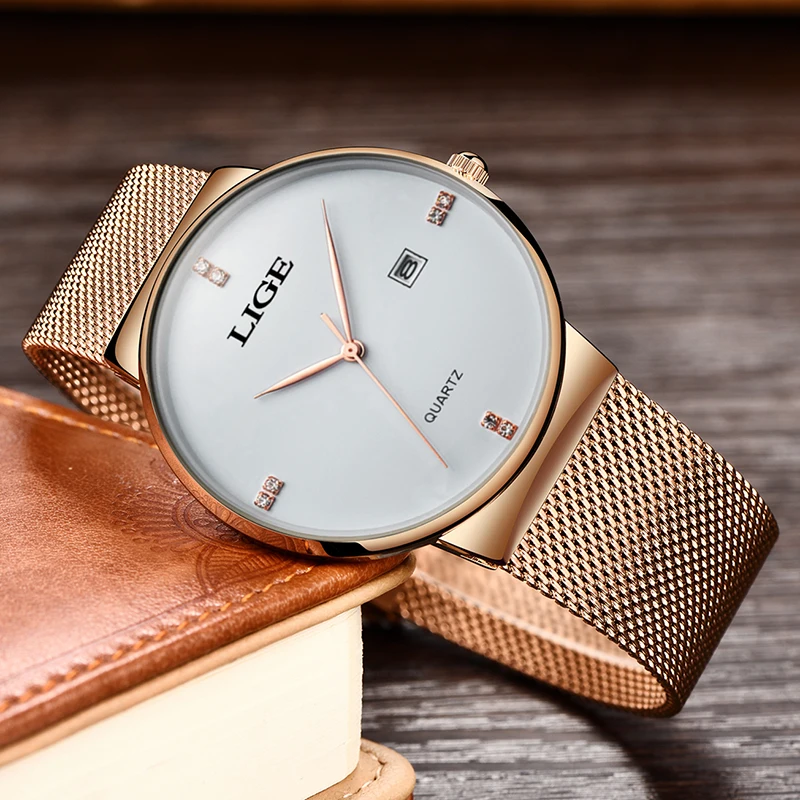 Часы LIGE женские кварцевые, модные повседневные водонепроницаемые простые наручные, розовые, золотые, черные