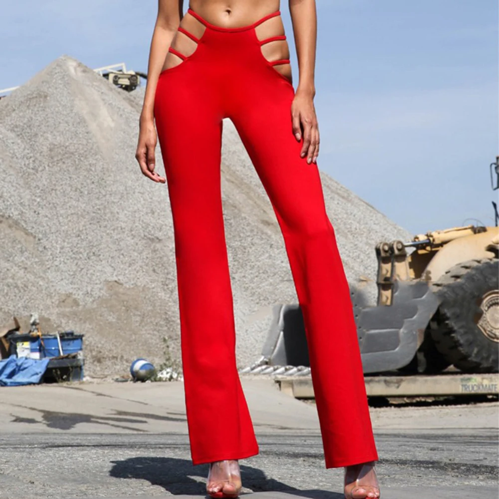 Новые женские облегающие спортивные брюки с высокой талией, сексуальные черные брюки с вырезами и дырками, расклешенные брюки, уличная одежда, брюки для женщин