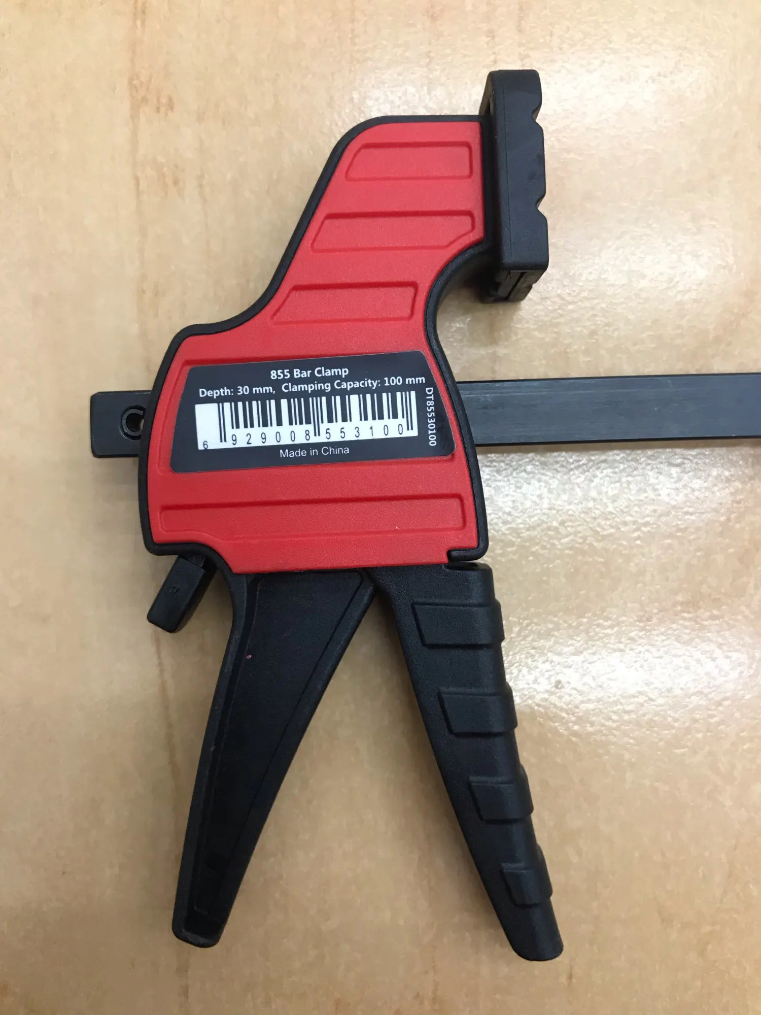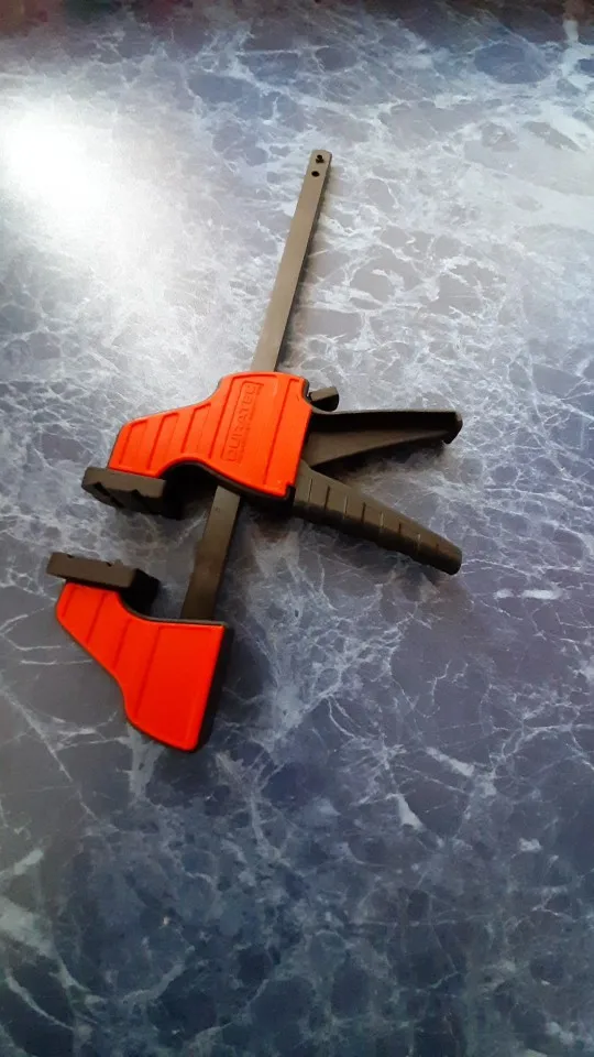 Очень удобные струбцины! Время на зажим заготовки существенно сократилось по сравнению с винтовыми. Направляющая металлическая, губки из пластика с резиновыми накладками. Держат достаточно надежно для своего размера, механизм не хлипкий. Доставка в Москву чуть больше месяца, трек отслеживался.