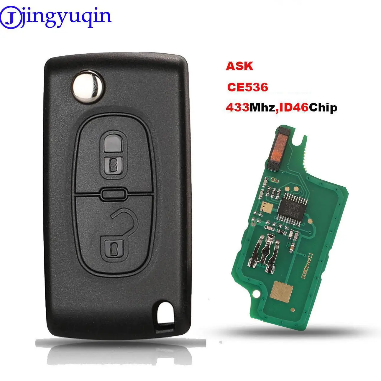 Пульт дистанционного управления jingyuqin ASK, 2 кнопки, ключ для Peugeot 207 307 308 407, для Citroen 433 МГц, PCF7961, HU83, ID46, CE0536 с логотипом