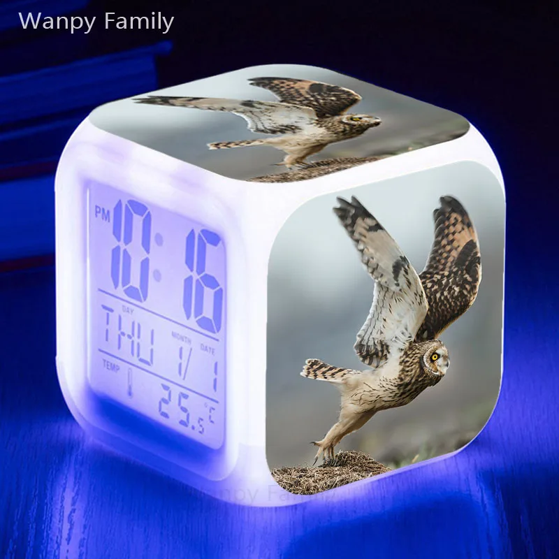 Милая сова Будильник 7 цветов светодиодный ночной светящийся сенсорный Будильник для детей подарок многофункциональные мигающие цифровые часы