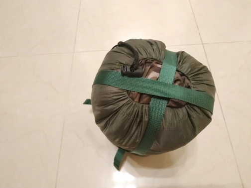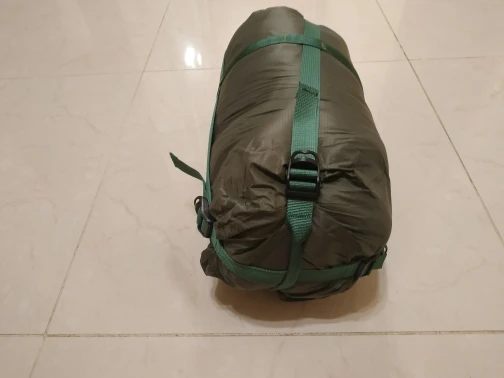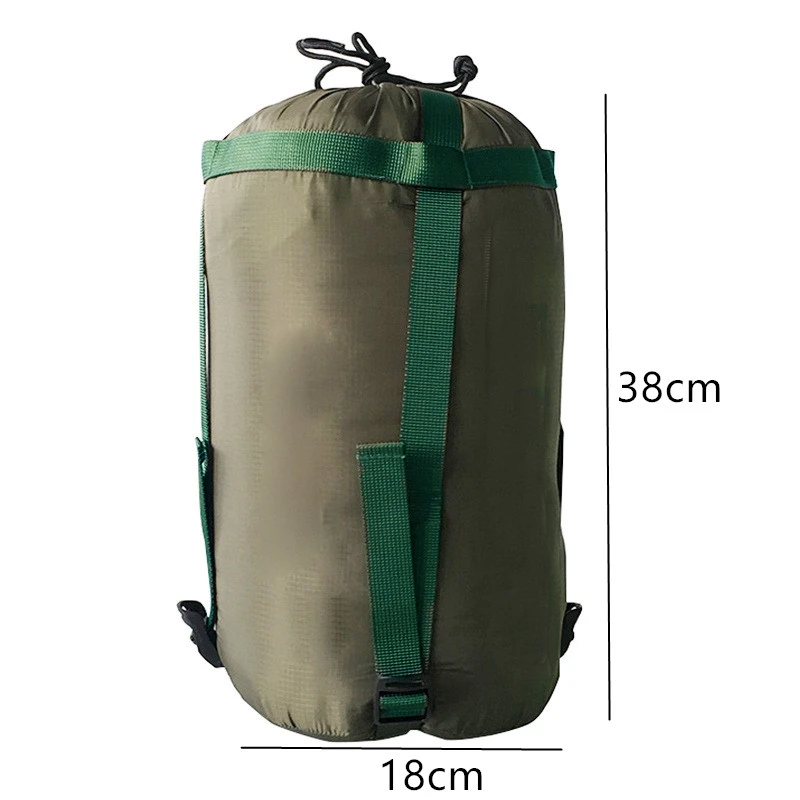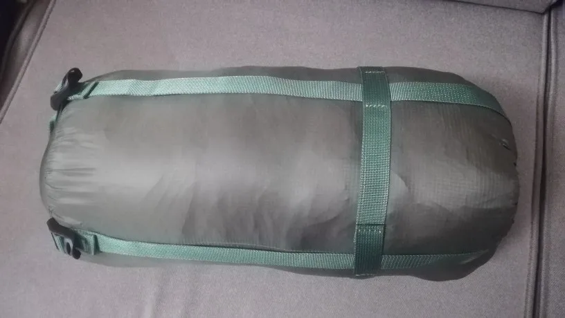 Розмір такий, що точно не для спальника. тканина не витримала першого разу(((, тріснула при затягуванні. якщо в нього складати нижню білизну або паралон;( можна користуватися. з покупкою промах нажаль(((
