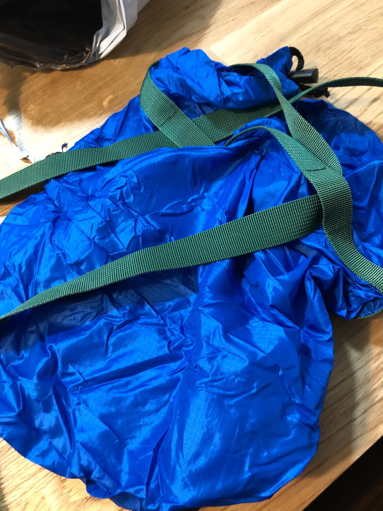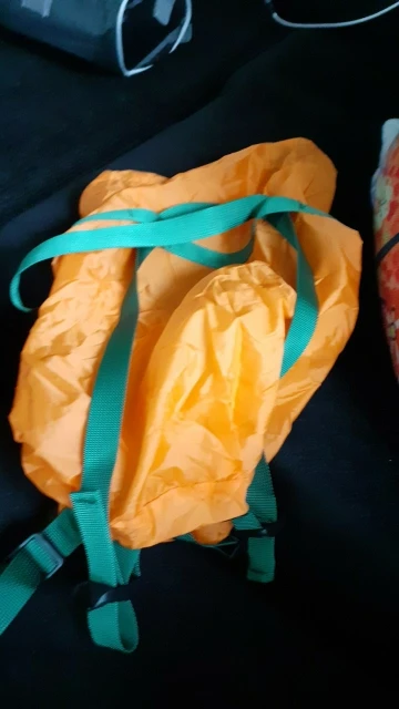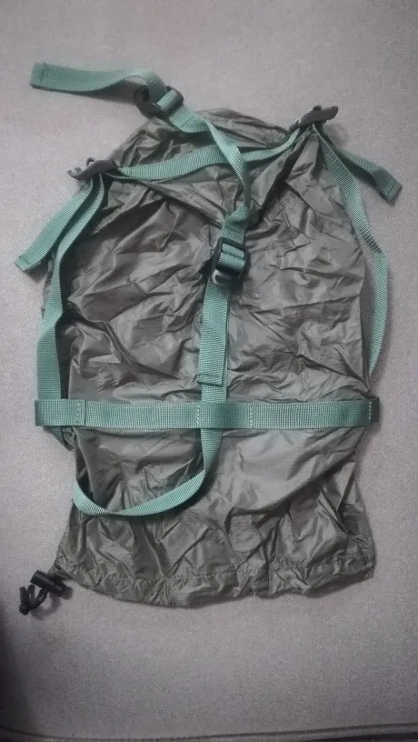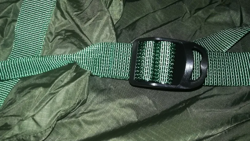 Стропы ярко зелёные. Ткань очень тонкая! Фурнитура на вид крепкая. Объём в несжатом состоянии около 7 литров.