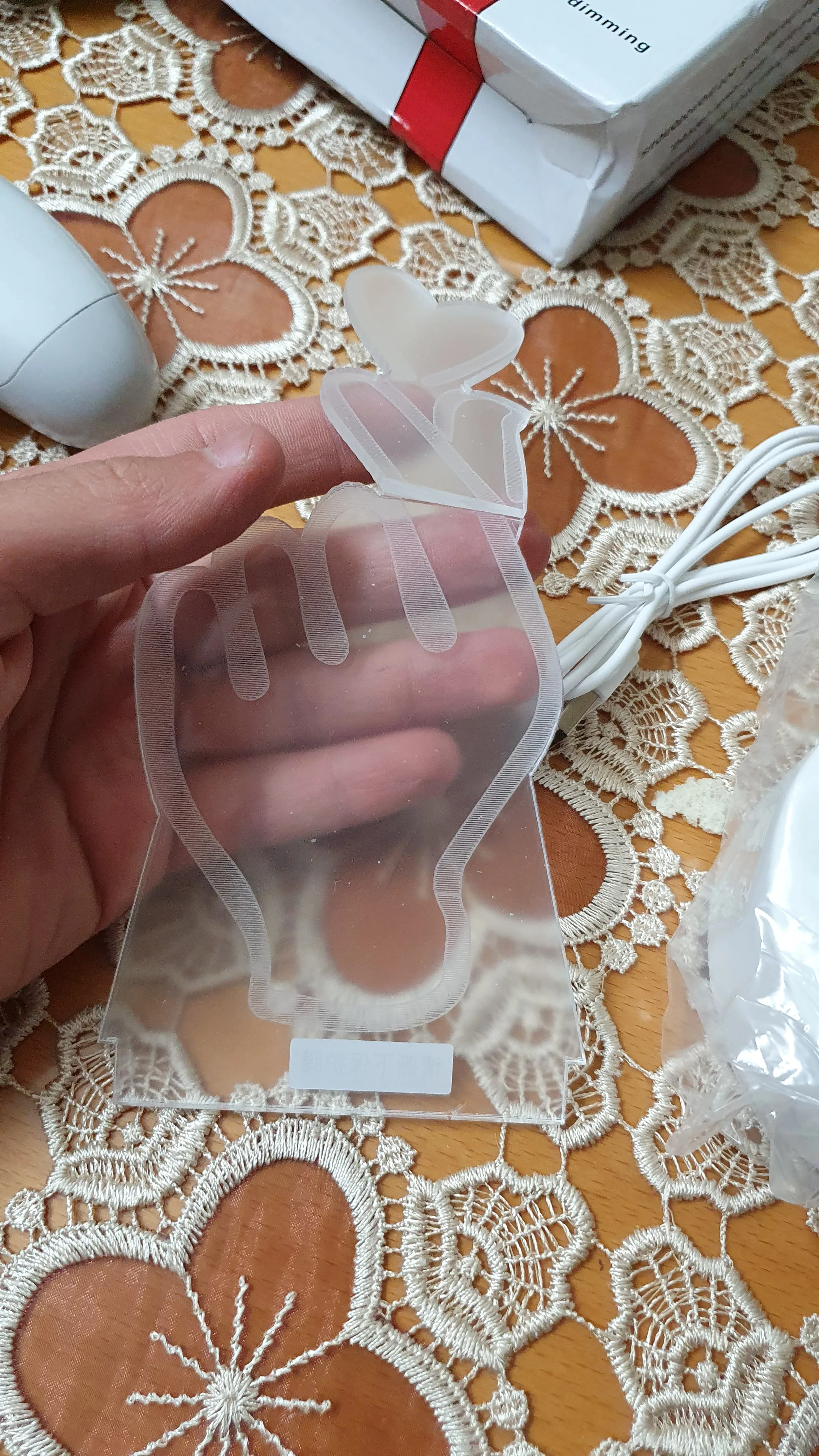 Посылка ехала две недели. Трек отслеживался. На фото цветы в пленке, потому что покупала для подарка. Приятный свет для ночника. Симпатичная безделушка. Продавец молодец, сращу отправил. Коробка немного помялась, думаю подруга не сильно расстроится, главное что всё работает.