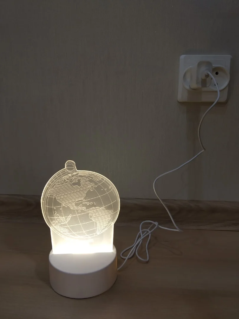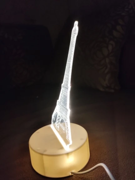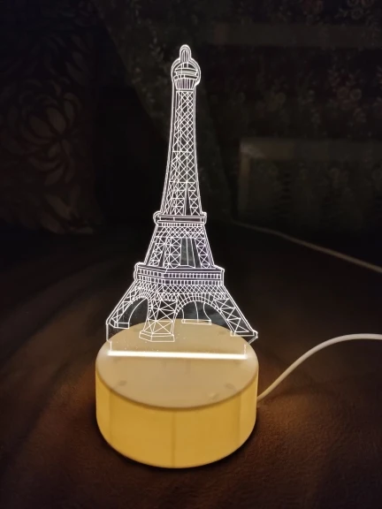 Ночник очень классный, яркий и компактный. В темноте светится красиво. В комплекте пластина и основание, адаптера нет, но подошло самое простое из ближайшего магазина. На пластине было защитное покрытие из плёнки, так что приехала она абсолютно не пострадавшей. Доставка быстрая.