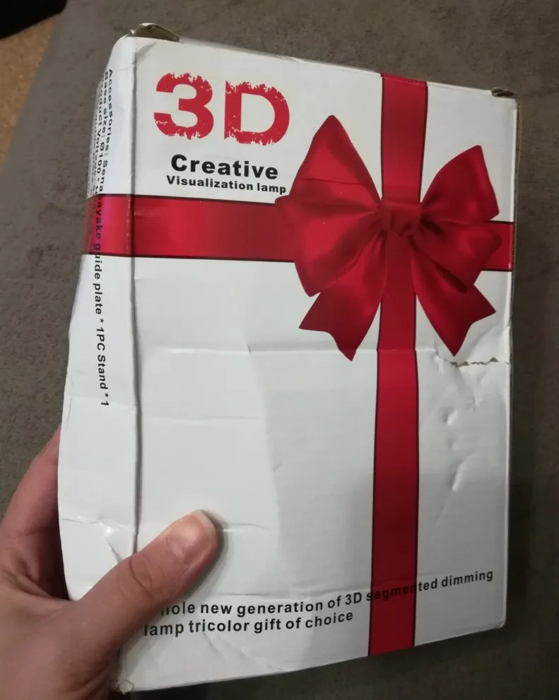 Заказала 11.11, забрала 4.12 (г. Воронеж). Попросила продавца упаковать светильник лучше, так как брала несколько в подарок. Продавец в итоге оба светильника положил в одну коробку (которая в последствии была сильно помята). Из-за соседства подставка местами была деформирована и поцарапана. Всё работает, самую плохую пришлось оставить себе (на фото подключён другой светильник, так как с оленем отложила в подарок). Комплектация: подставка белого цвета со шнуром usb, фигурка. На фигурке с одной стороны прикреплена плёнка, которая потом снимается.