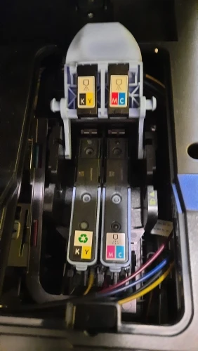 пришли Б/У. Причем такое чувство, что вставлялт ежиножды, но не подошли кому-то, т.к. сами картриджы достаточно чистые, а вот транспортировочные заглушки - в краске. Сперва ругался, говорил про гарантию, про совесть и пр. Но потом смирился, выровнял головы и начал печатать.
