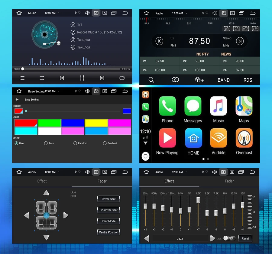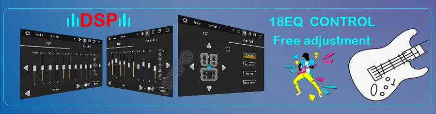 Поддержка эквалайзера 18 эквалайзеров для музыки, видеосъемки альбомов, названия песен, имени певца, лирической информации от проигрывателя по умолчанию.