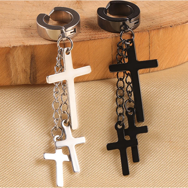 WIWI 1 пара в стиле «панк» из нержавеющей стали, серьги-капли с крестиком для мужские и женские носки в стиле хип-хоп ювелирные изделия ухо клип серьги-гвоздики рок серьги, модные ювелирные изделия, подарки