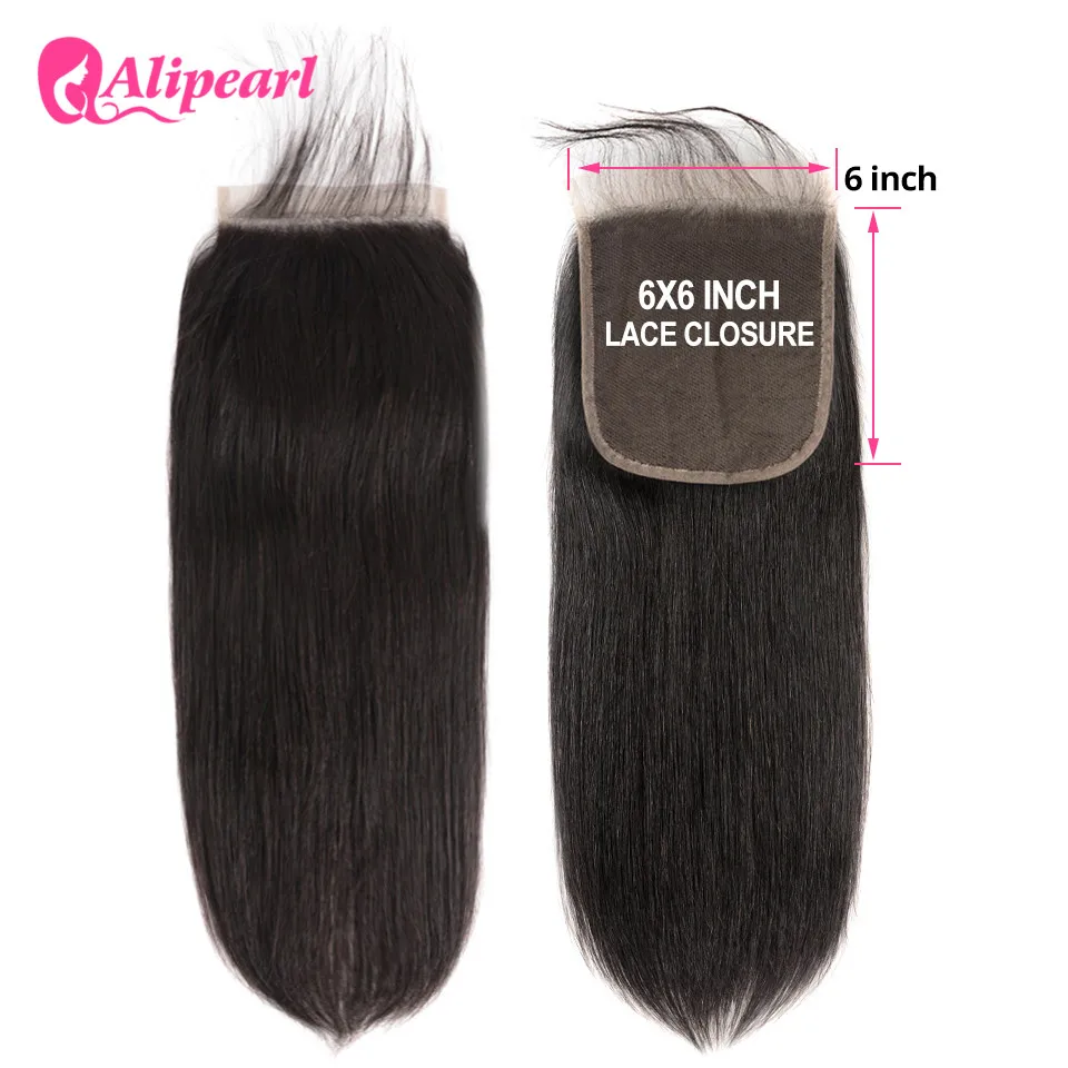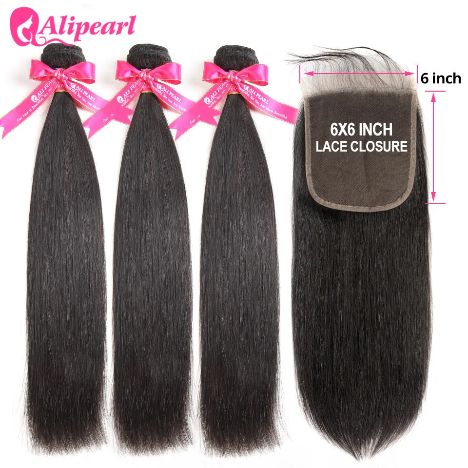 Прямые пучки волос с 6x6 закрытием свободная часть предварительно выщипанные перуанские волосы вплетаемые пучки волос Remy наращивание волос alibirl волосы