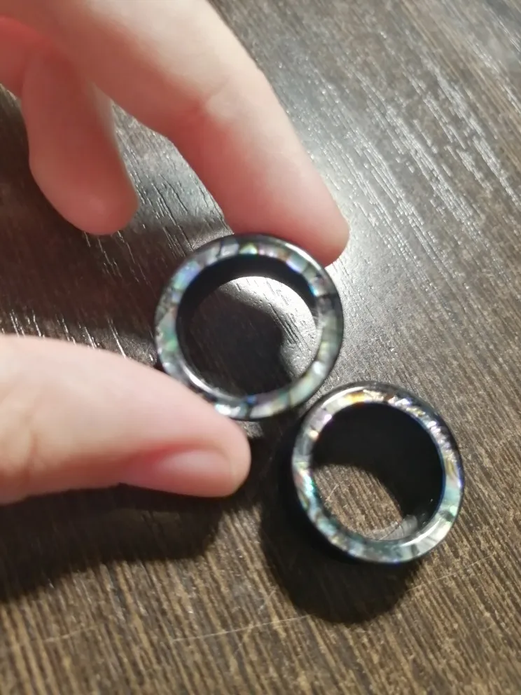 Заказывал вторую пару, потому что в первый раз прогадал с размером. Немного отличаются друг от друга: у одного в заливке больше зеленого, у второго - какого-то сиреневого или около того, не критично вообще. На солнце очень круто переливаются. Пришли быстро, недели за 3.