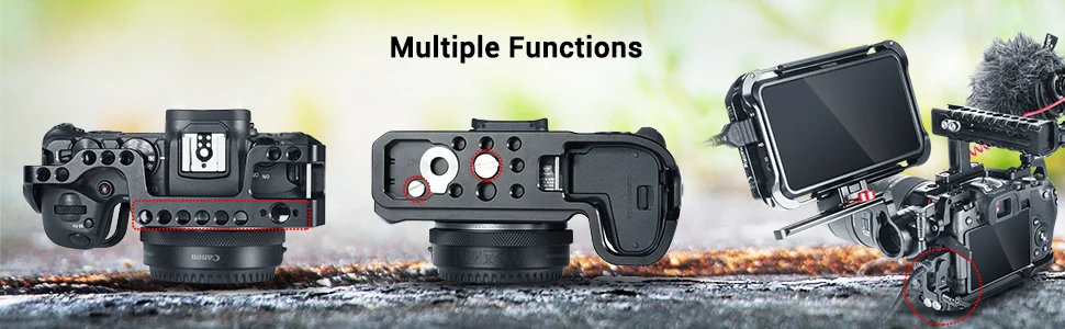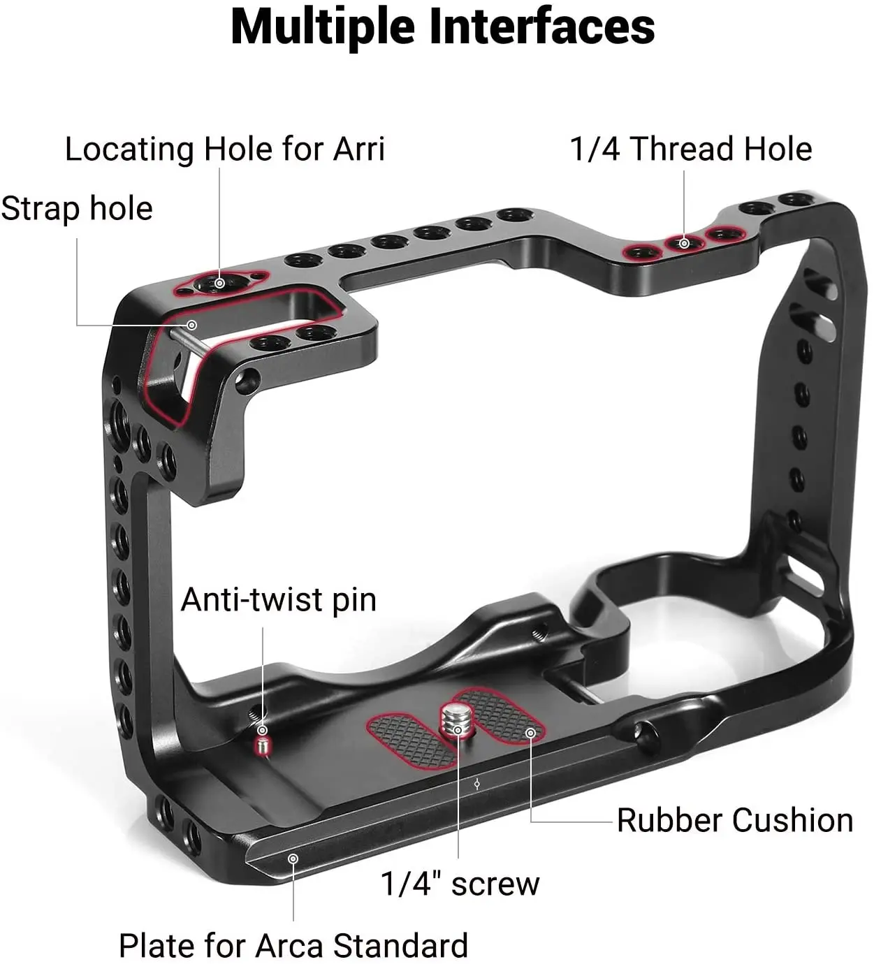 Ключевые особенности:1. Полностью облегающая клетка, специально разработанная для Canon EOS RP.2. Камера надежно крепится к клетке с помощью винта 1/4 и анти-скручивающего штифта.3. Несколько резьбовых отверстий 1/4 "-20 и 3/8"-16 и отверстия ARRI.4. Встроенная Арка-совместимая пластина внизу.5. Встроенная отвертка на дне.