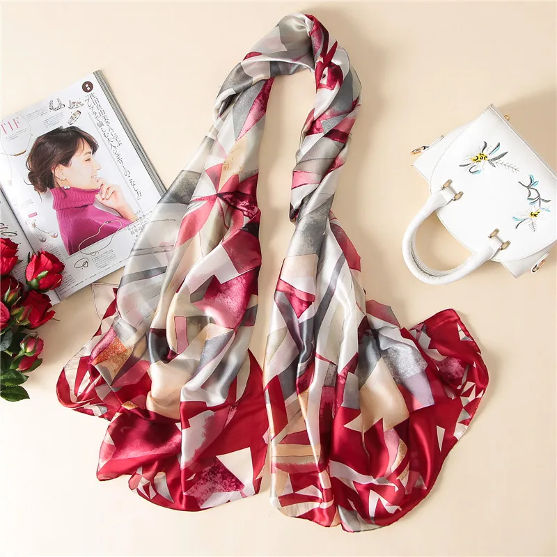 Классический женский шелковый шарф, женские шарфы, женская Пляжная ...