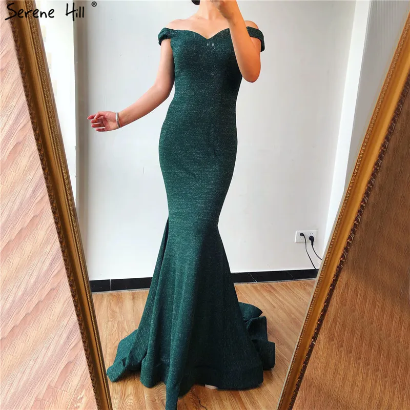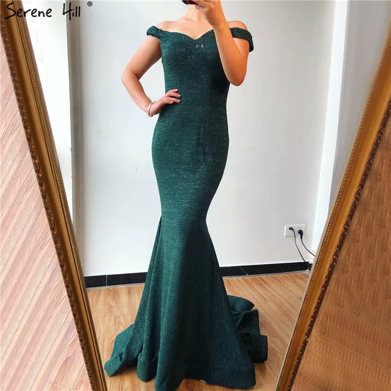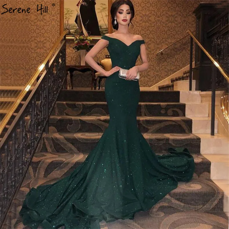 Зеленое блестящее сексуальное вечернее платье с открытыми плечами, милое вечернее платье русалки с блестками, настоящая фотография, Serene Hill LA6683