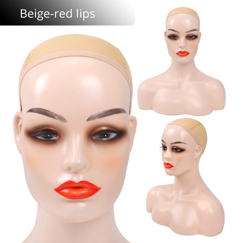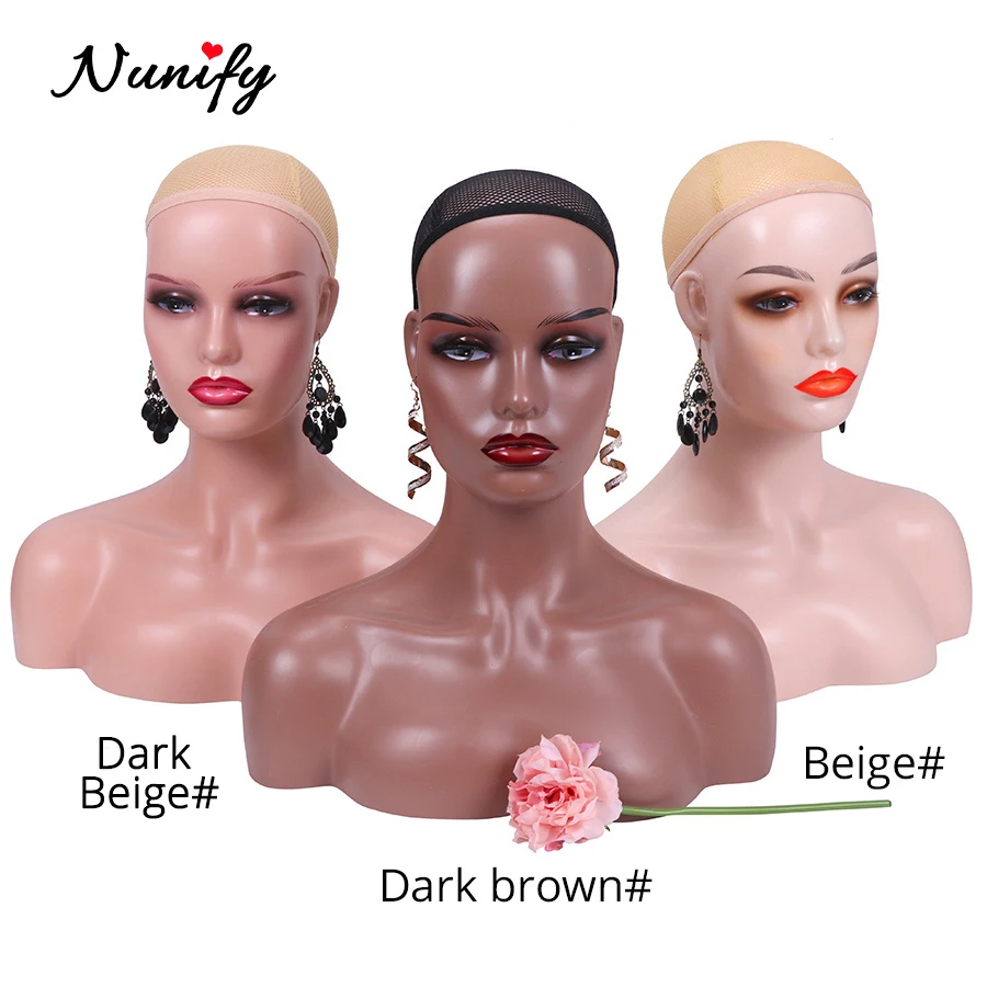Манекен с головой и плечами, двухцветный головной убор бежевого и черного цветов, витрина для очков, париков, с отверстиями для ушей, Nunify, женская голова