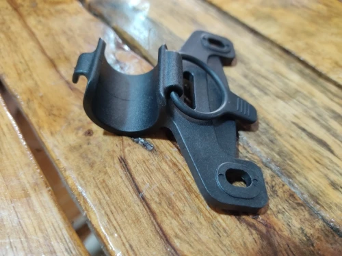 Очень твёрдый пластик, не гнётся, хрупкий. При первой же попытке защёлкнуть насос, сломался. Для насосов с маленьким диаметром.