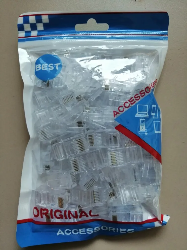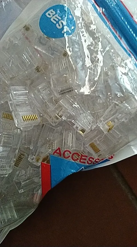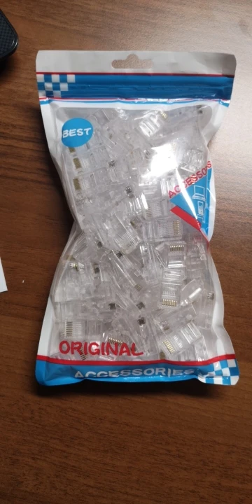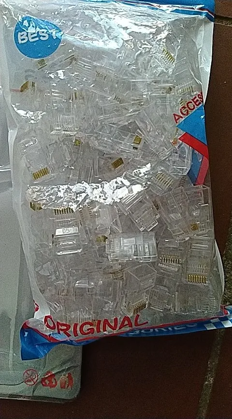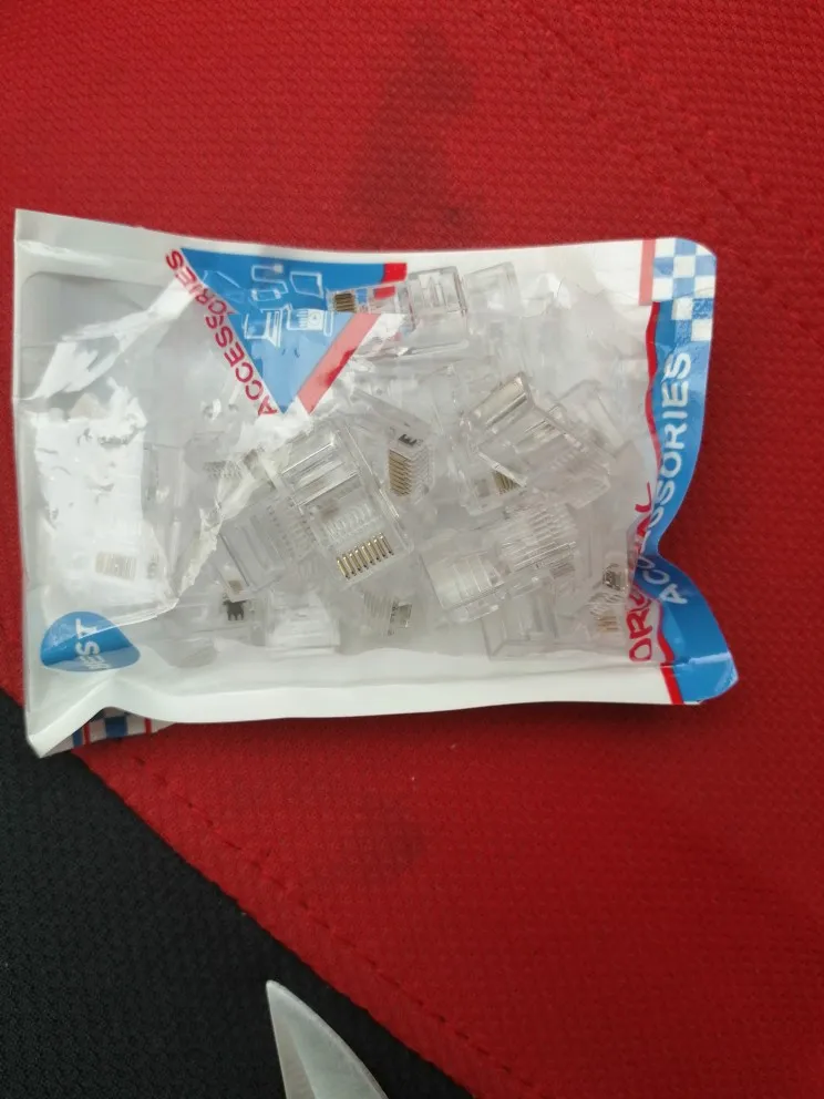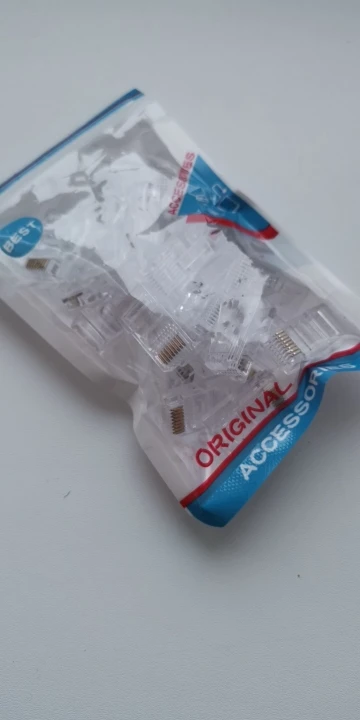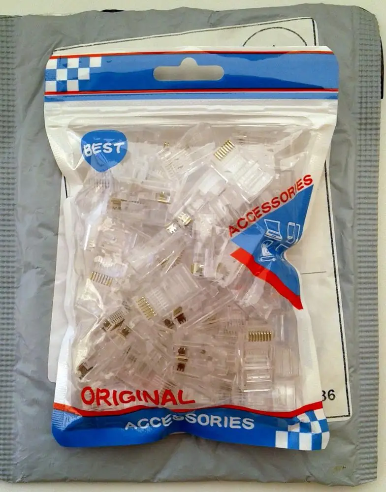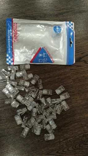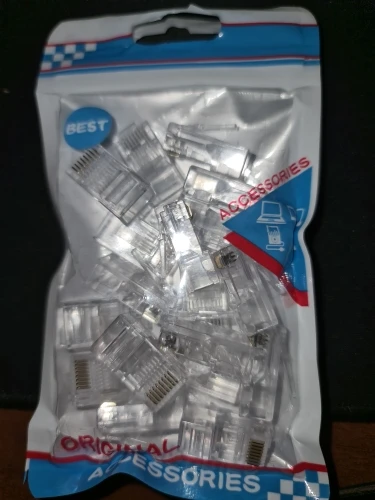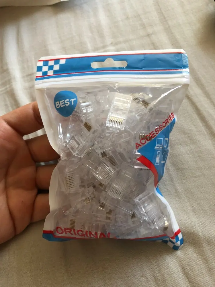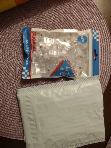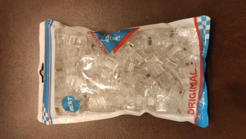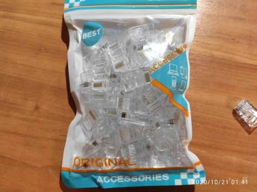 Заказал 05.08, получил 21.08.2020 (17 дней, быстро) на "Новой почте" Киева. Брал 50 штук за $6.59, получается $0.13 за штуку. Набор прибыл, упакованный в почтовый серый п/э пакет с "пупыркой" внутри, в фирменном пакетике с zip-замком. Количество не пересчитывал, и так верю. Общее первое впечатление хорошее, коннекторы выглядят добротно и качественно. Язычок на коннекторах не отламывается сразу при отгибе в обратную сторону, выдерживает около десяти перегибов, пружинистый пластик. Провода входят туго, джеки подходят только для cat. 5/5е с проводниками диаметром не более 1,0 мм. Обжимал обычной обжимкой, потом бокорезами обрезал лишнее, остаются небольшие хвостики, но вхождению в порт никак не мешают. Очень удобно, по сравнению с обычными коннекторами, особенно если витая пара слишком мягкая и гибкая и плохо поддаётся формовке.
