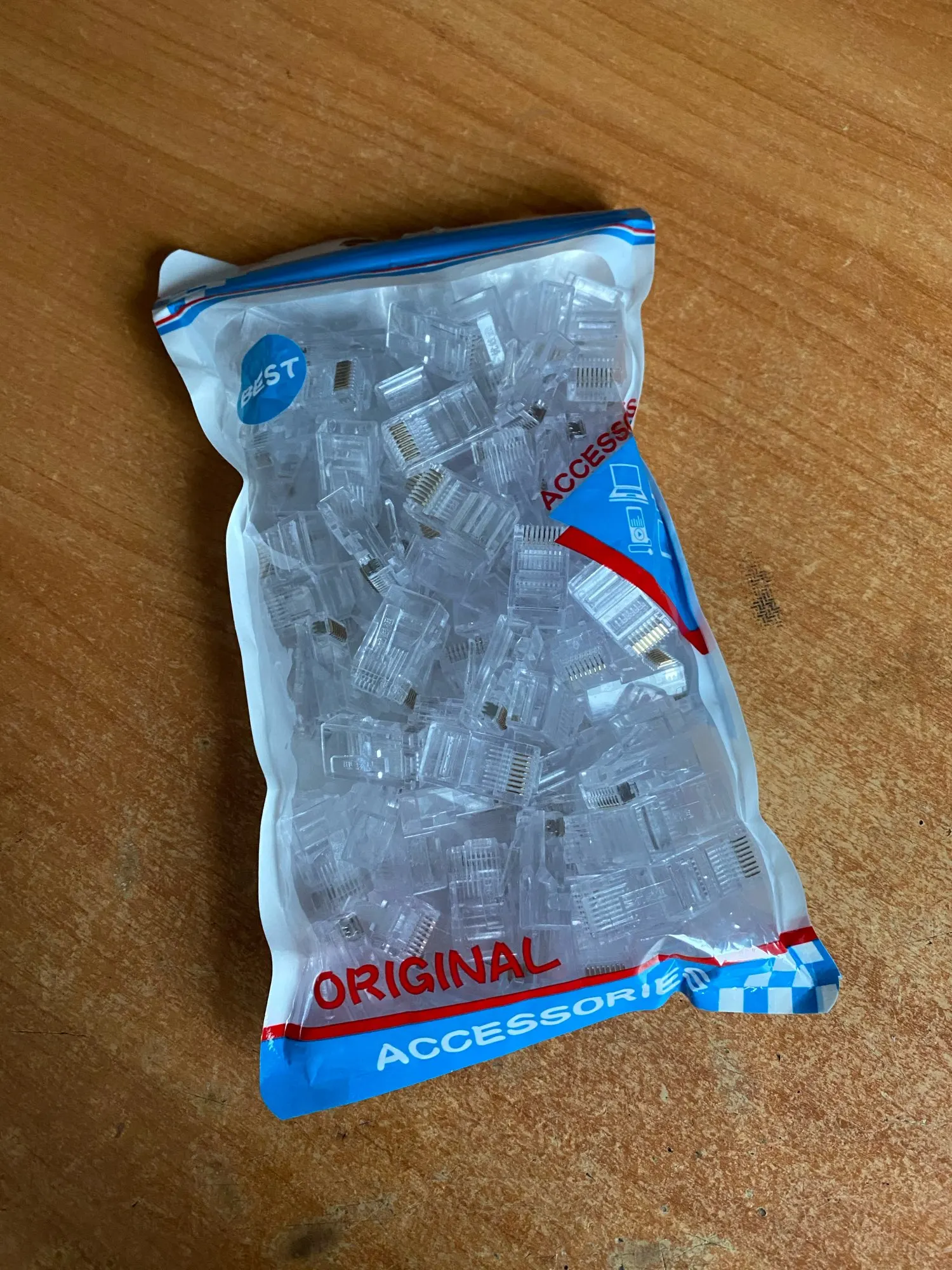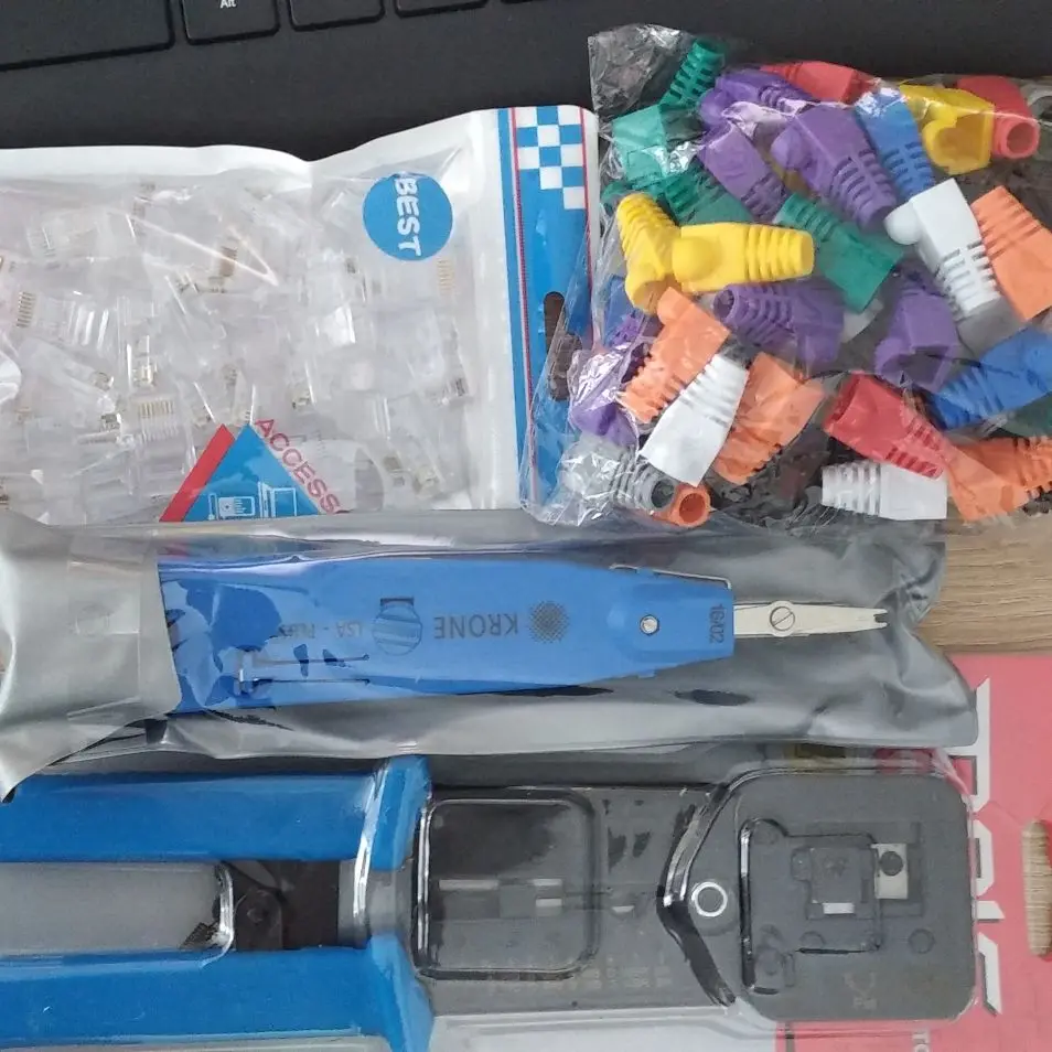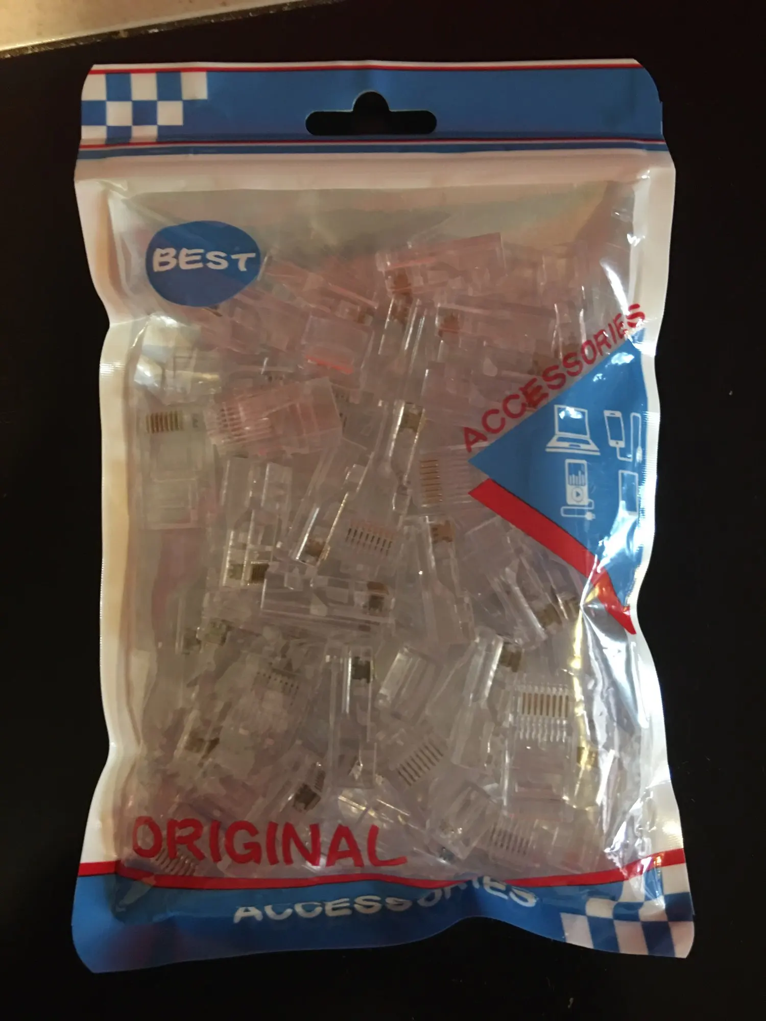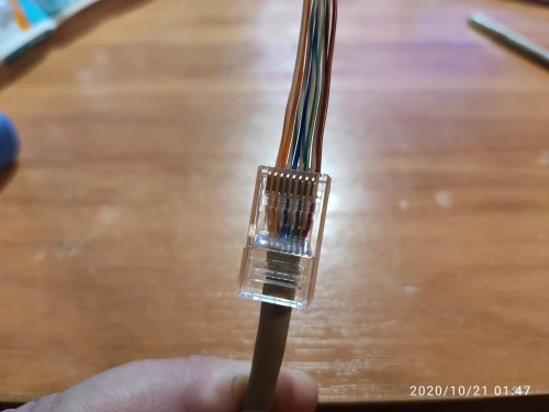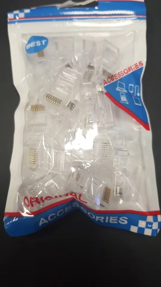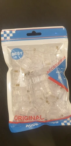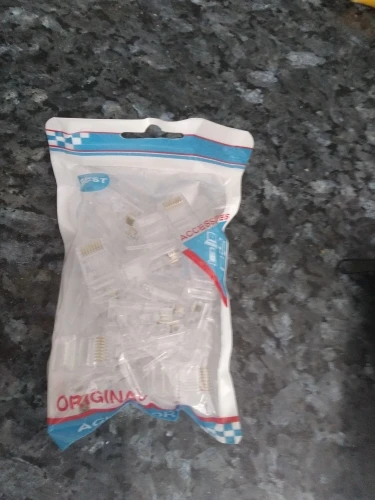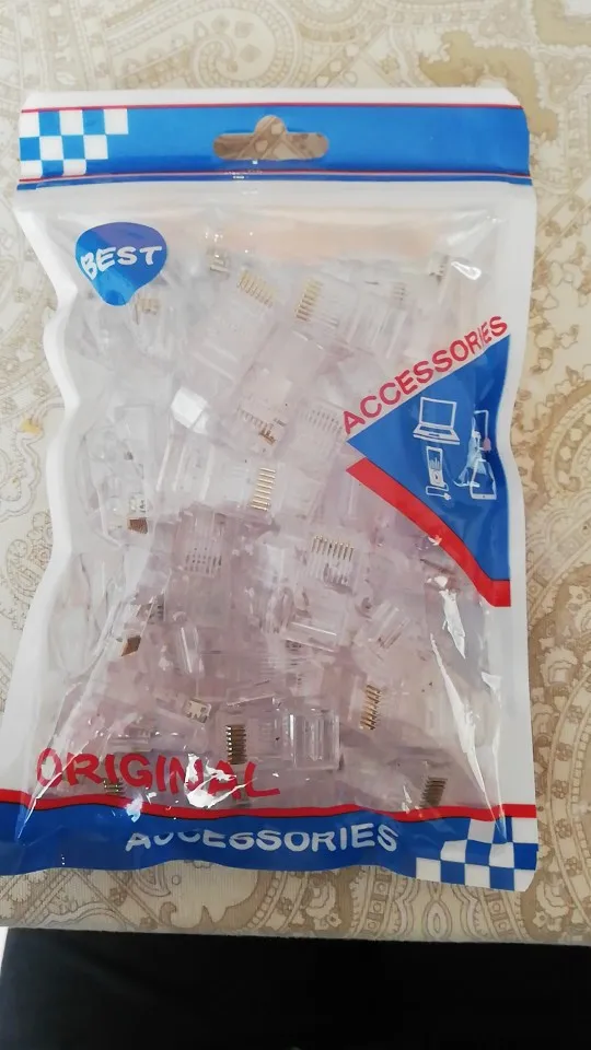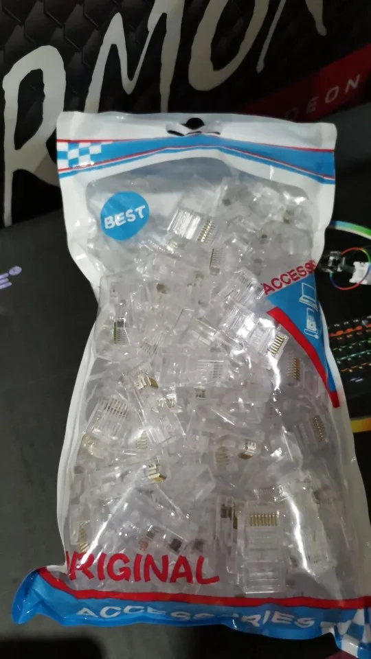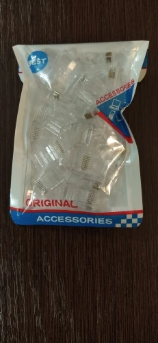 Заказал 05.08, получил 21.08.2020 (17 дней, быстро) на "Новой почте" Киева. Брал 50 штук за $6.59, получается $0.13 за штуку. Набор прибыл, упакованный в почтовый серый п/э пакет с "пупыркой" внутри, в фирменном пакетике с zip-замком. Количество не пересчитывал, и так верю. Общее первое впечатление хорошее, коннекторы выглядят добротно и качественно. Язычок на коннекторах не отламывается сразу при отгибе в обратную сторону, выдерживает около десяти перегибов, пружинистый пластик. Провода входят туго, джеки подходят только для cat. 5/5е с проводниками диаметром не более 1,0 мм. Обжимал обычной обжимкой, потом бокорезами обрезал лишнее, остаются небольшие хвостики, но вхождению в порт никак не мешают. Очень удобно, по сравнению с обычными коннекторами, особенно если витая пара слишком мягкая и гибкая и плохо поддаётся формовке.