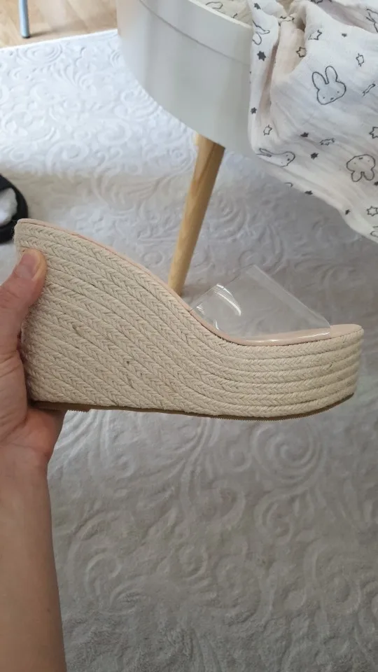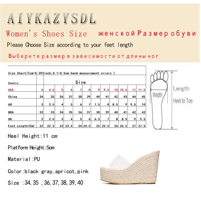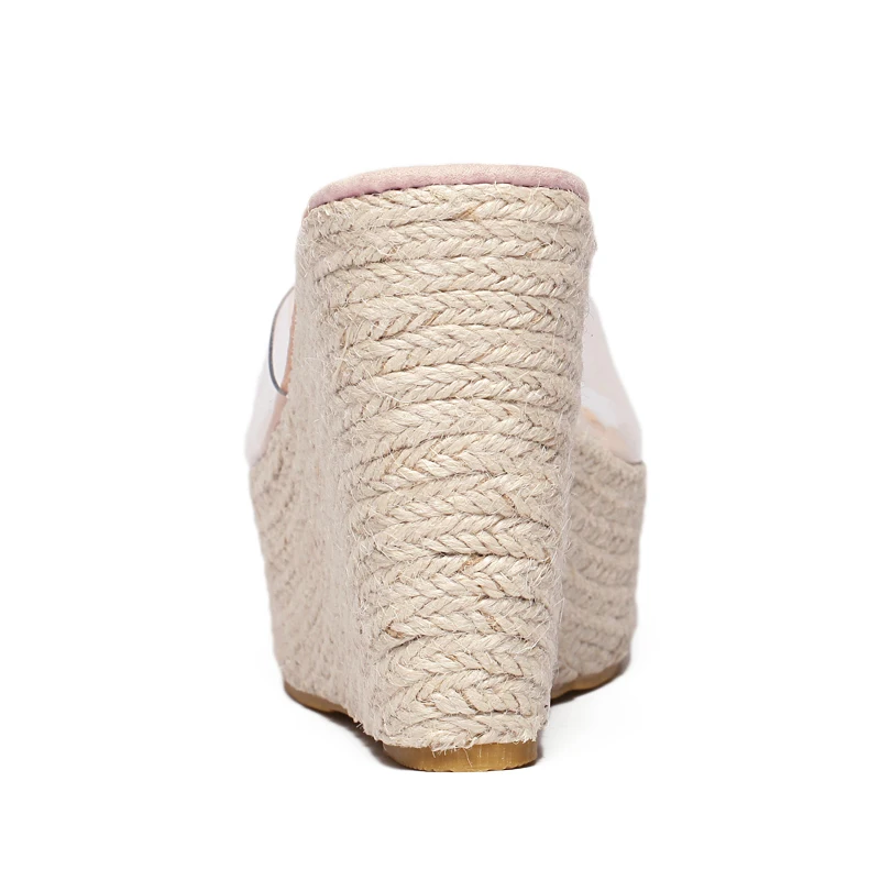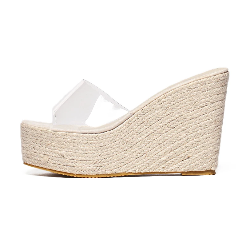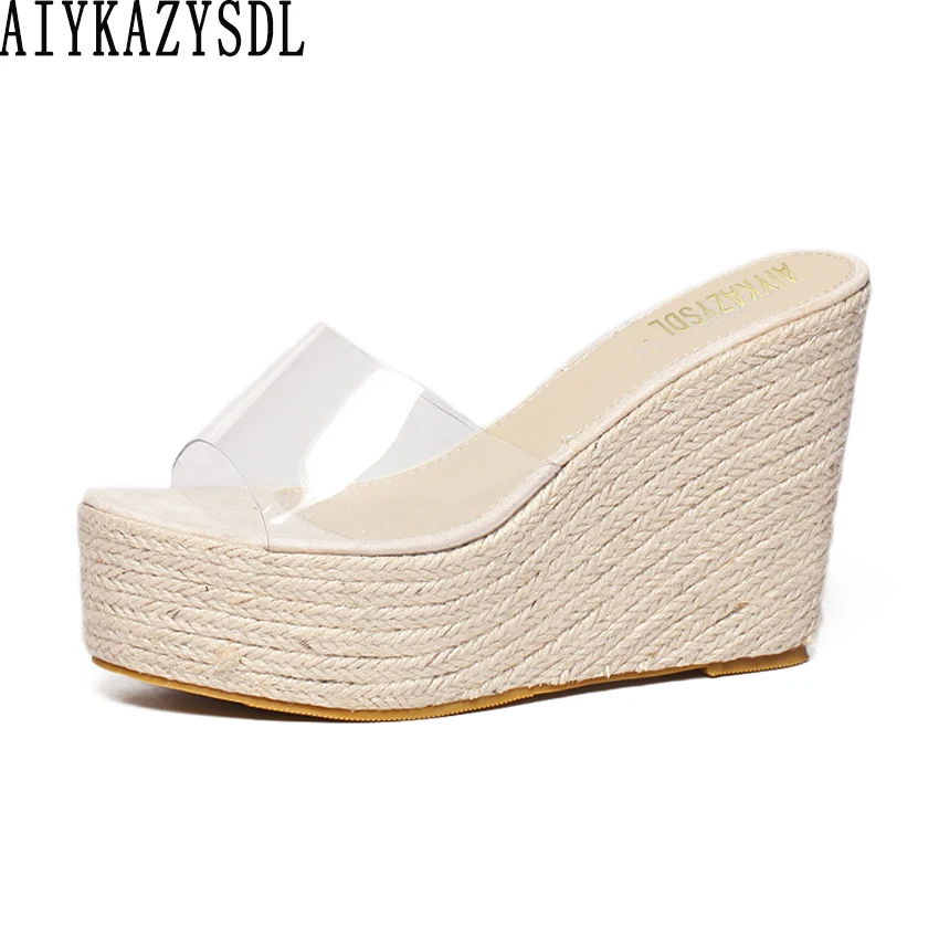 Женские Прозрачные Сандалии AIYKAZYSDL, на платформе, из пеньковой веревки, на толстой соломенной подошве, на высоком каблуке, тапочки мюли