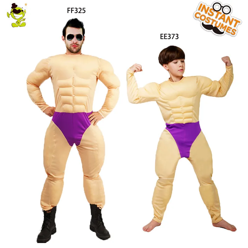 Purim взрослые костюмы косплей комбинезон с мышцами ролевая игра Хэллоуин ребенок мальчик мышцы сильная мужская одежда