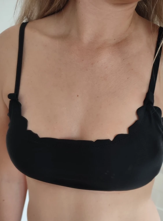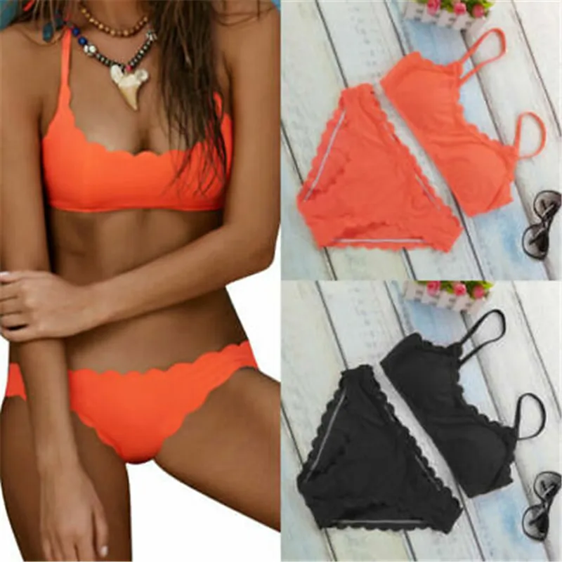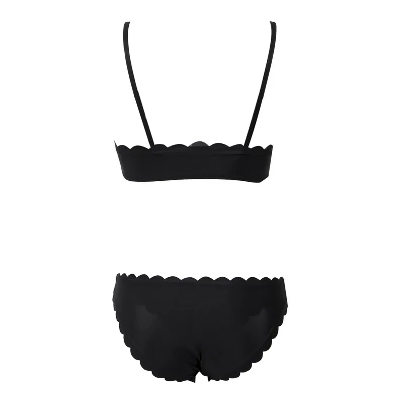 Женский купальник-бикини в форме волны, милый Однотонный черный купальник с чашками пуш-ап, пикантное бандо, Пляжная купальная одежда с волнистыми боками, 2019
