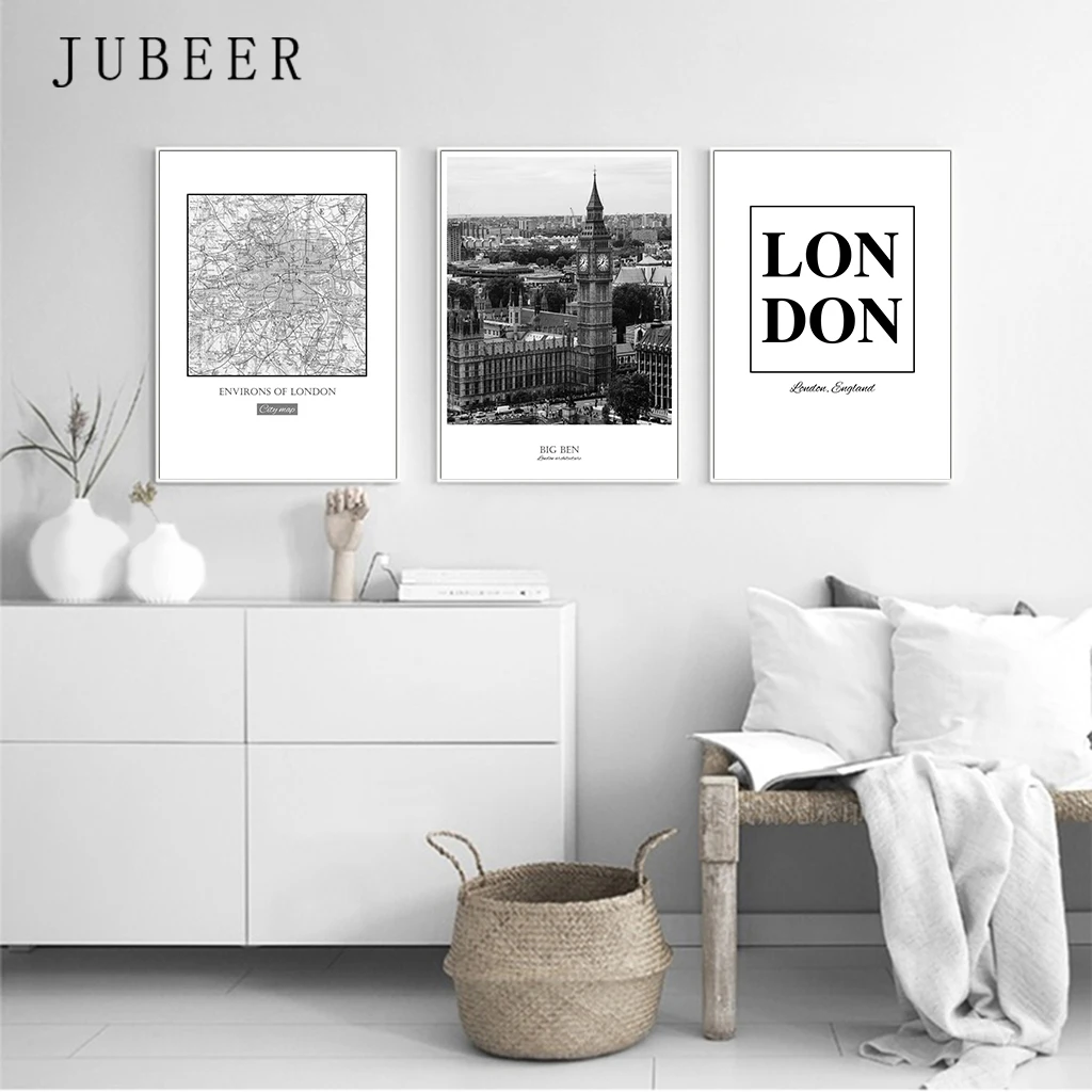 Современный Нью-Йорк Лондон Париж Карта города Настенная картина для гостиной черно-белые постеры и принты домашний декор