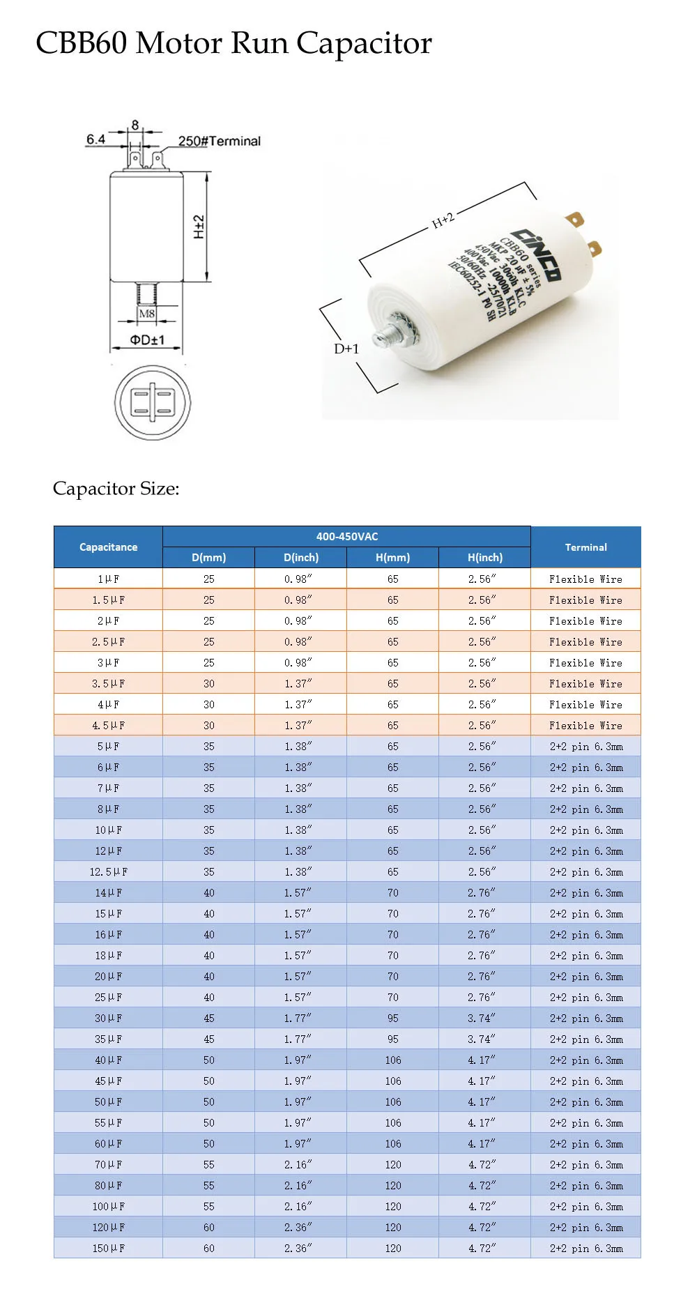 Конденсаторы для запуска двигателя от мкФ до 35 мкФ CBB60 CBB61 CBB65, 4 контакта, инструмент для запуска водяного насоса переменного тока 450 в переменного тока