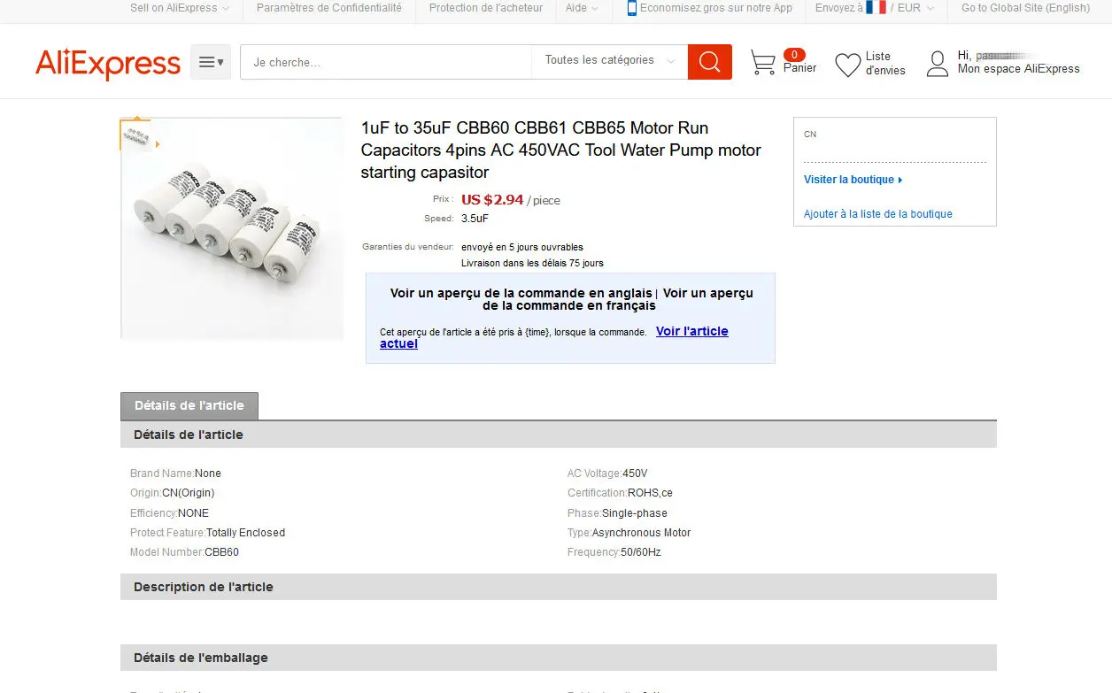 Страна: FR Speed: 30uF Доставка: Standard Shipping 20.04.2021
