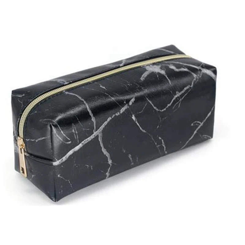 Чехол для карандашей для девочек, на молнии, с мраморным узором, школьные принадлежности, из искусственной кожи