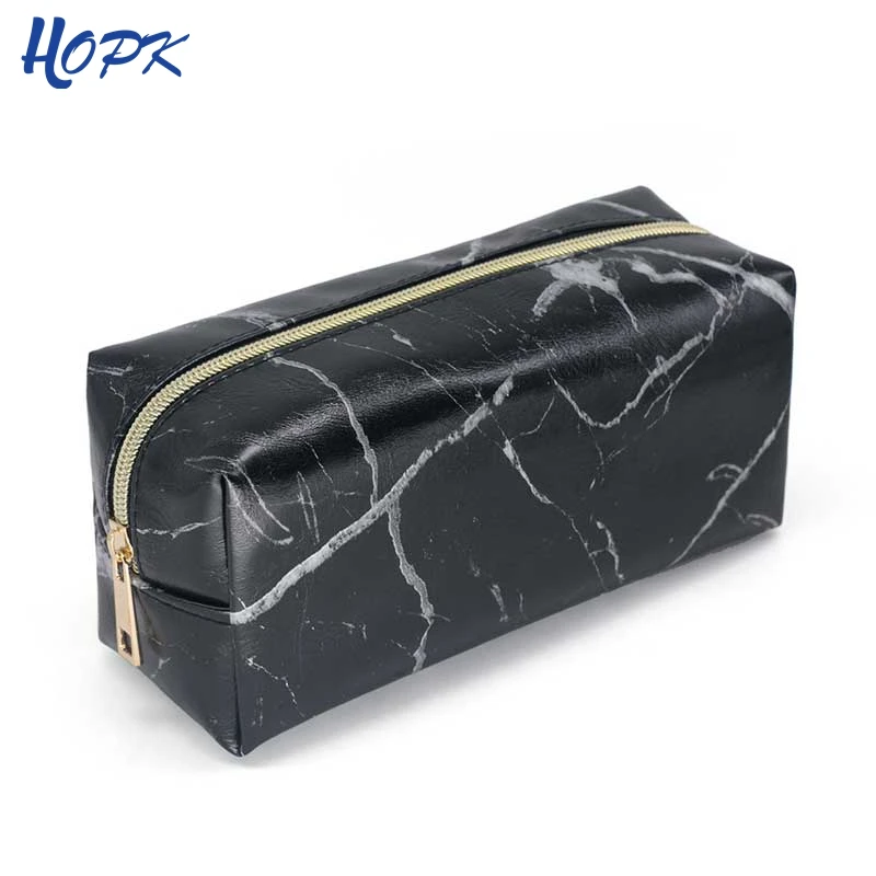Черный Мраморный пенал для девочек и мальчиков, чехол для хранения макияжа, Большая косметическая сумка кожаный пенал, школьные принадлежности