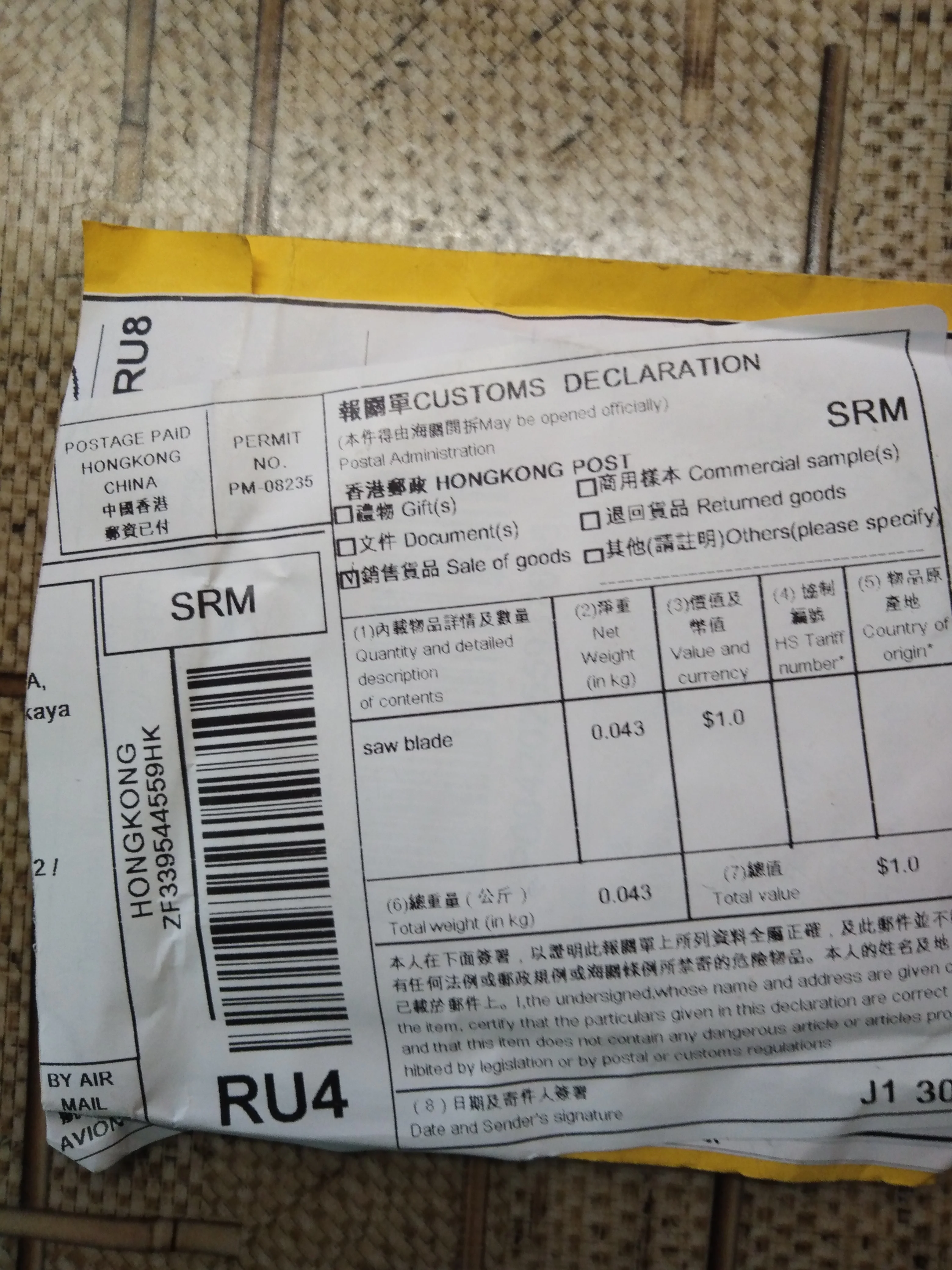 Страна: HU Color: 85x15x24T Доставка: China Post Registered Air Mail 02.06.2021