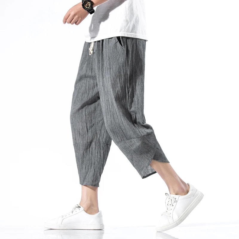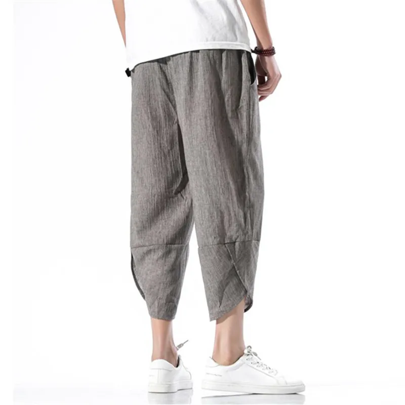 Мужские Брендовые повседневные брюки 2021 летние новые модные свободные с эластичной резинкой на талии мужские хлопковые укороченные брюки мужские шаровары в стиле хип-хоп