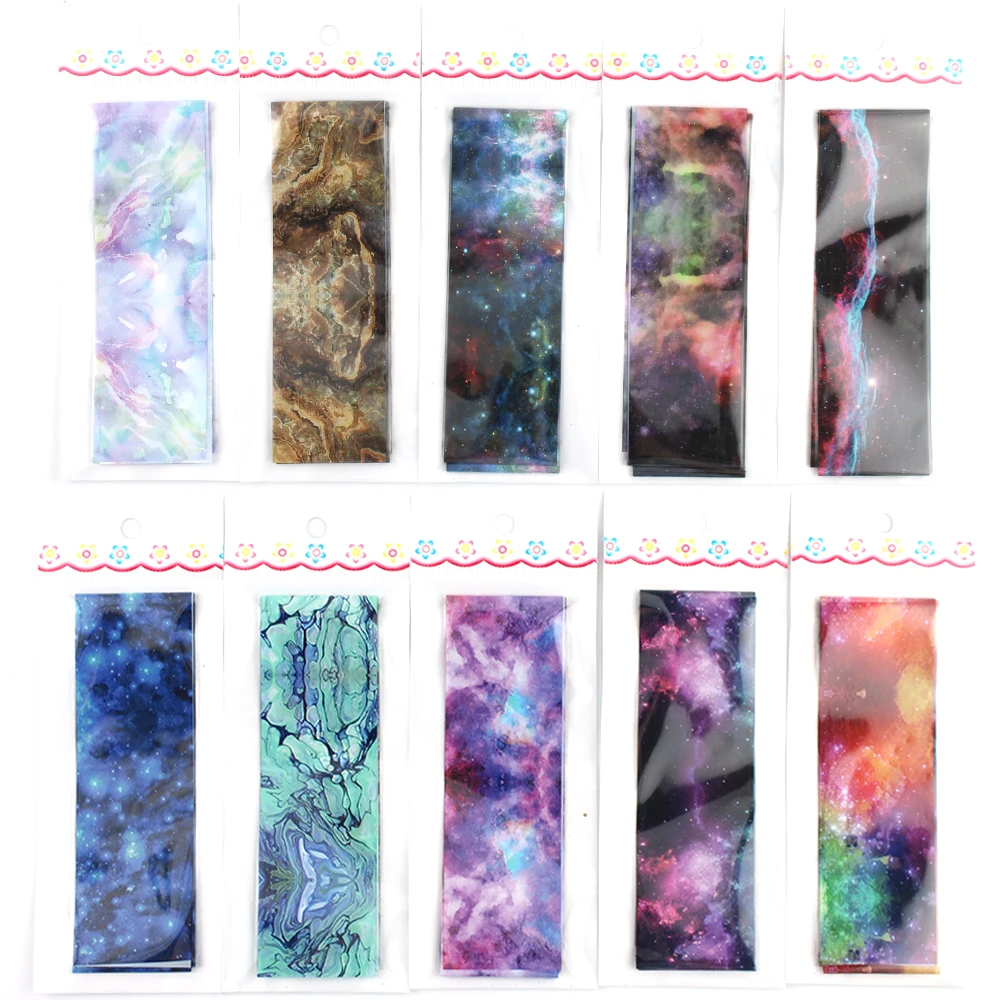 10 шт.компл. Фольга для ногтей звездное небо голографическая перево...