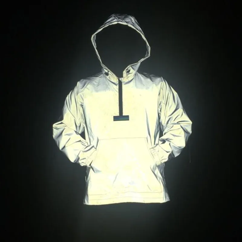 Мужская толстовка с капюшоном, Повседневная Светоотражающая Толстовка с длинным рукавом в стиле хип-хоп