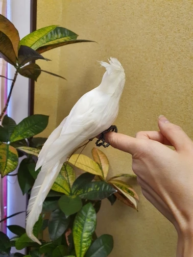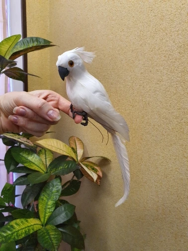 Покупали белого попугая. от клюва до кончика хвоста 25 см. очень красивый, как живой