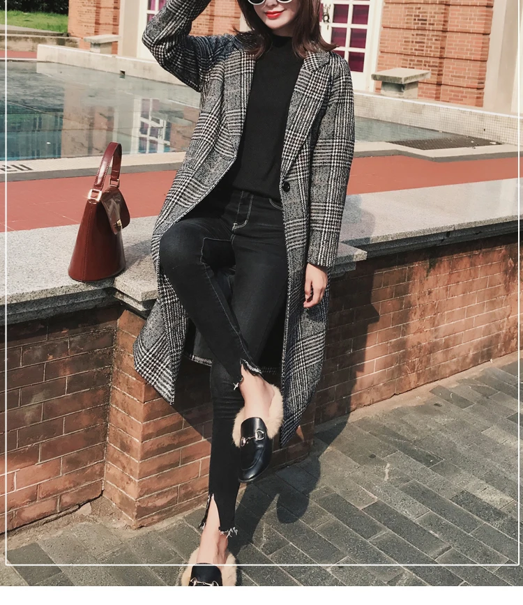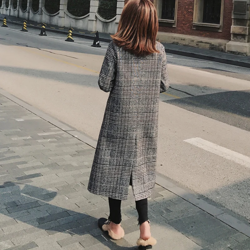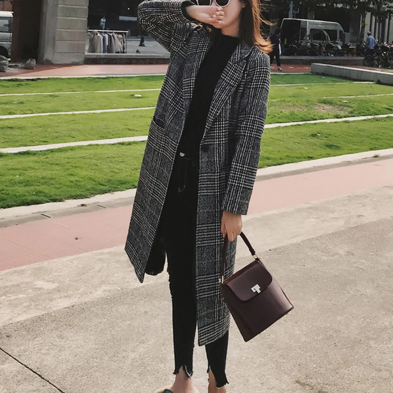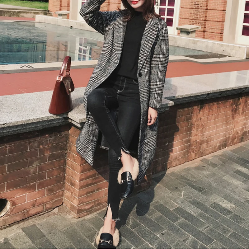 Серое клетчатое шерстяное пальто, новинка 2020, женская верхняя одежда, зимняя одежда, модное женское элегантное пальто из смешанной шерсти на одной пуговице