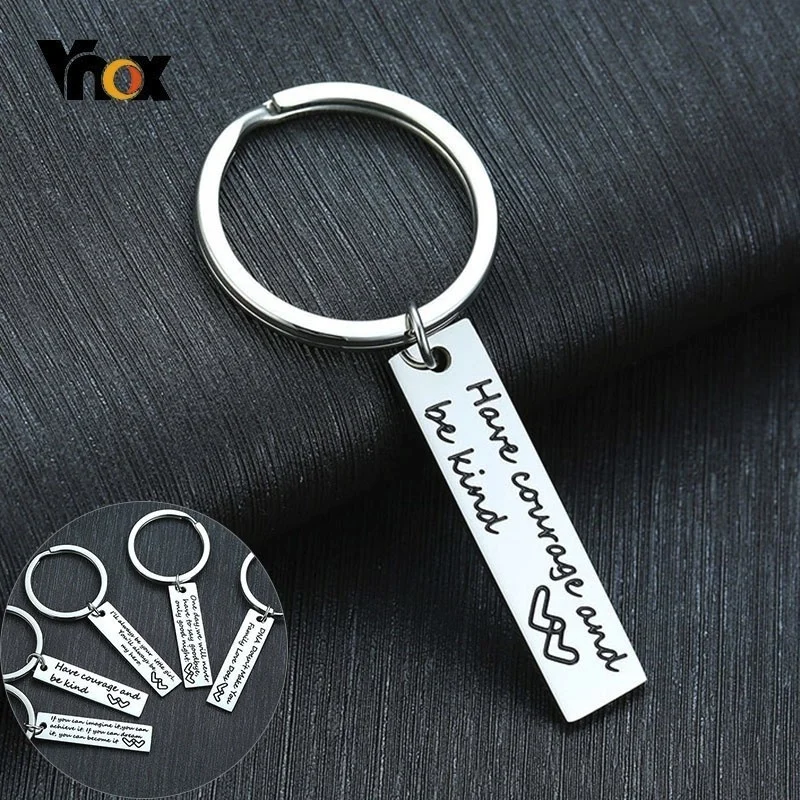 Vnox Простая Вертикальная барная цепочка для ключей для мужчин и женщин, глянцевое кольцо для ключей из нержавеющей стали, персонализированное аксессуары