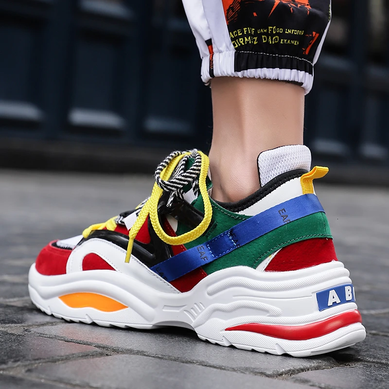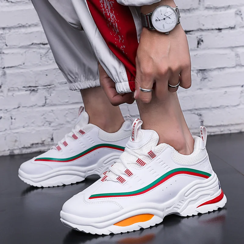 Мужская и женская спортивная обувь для бега; Сетчатые дышащие кроссовки, увеличивающие рост; Модная разноцветная женская обувь на платформе со шнуровкой; Обувь для папыСоветы: Пожалуйста, выберите размер в соответствии с длиной Вашей стопы.