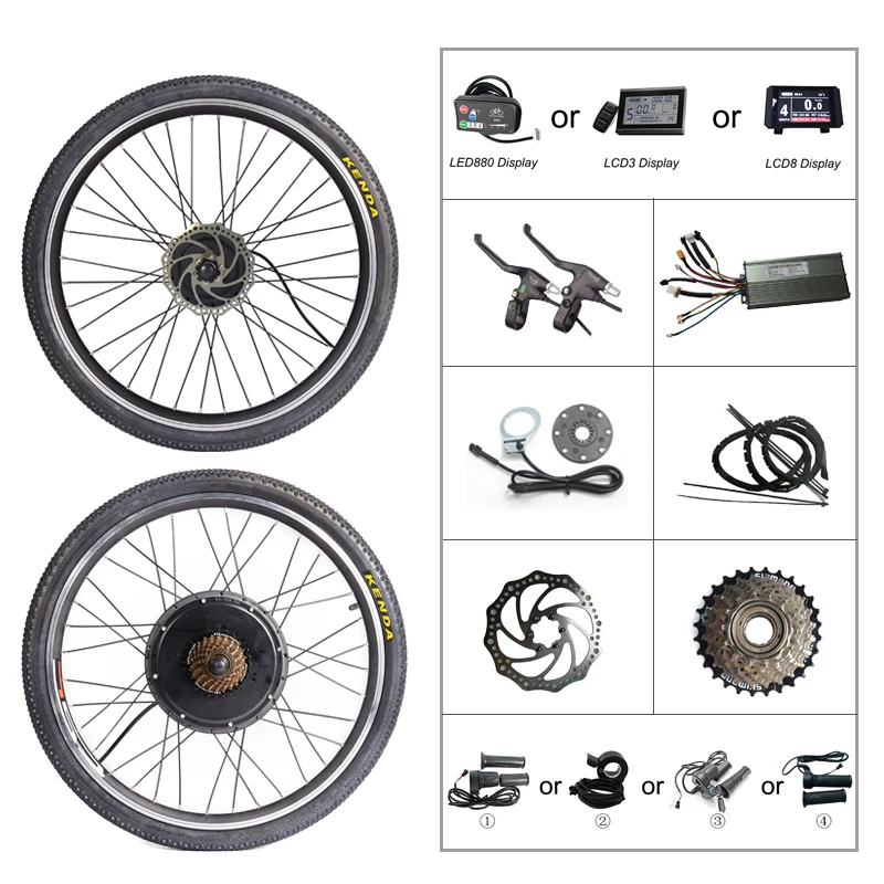 Электрический велосипед конверсионный набор 36V 250W 350W 48V 500W 1000W 1500W Ebike 20 24 26 27,5 28 29inch 700C Передний Задний колесный мотор