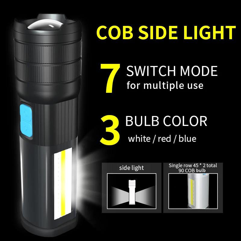 Светодиодный фонарик многофункциональный Zoom T6 / L2 / P90 фонарик с COB прожектор с сильным магнитом мобильный мощный аварийный
