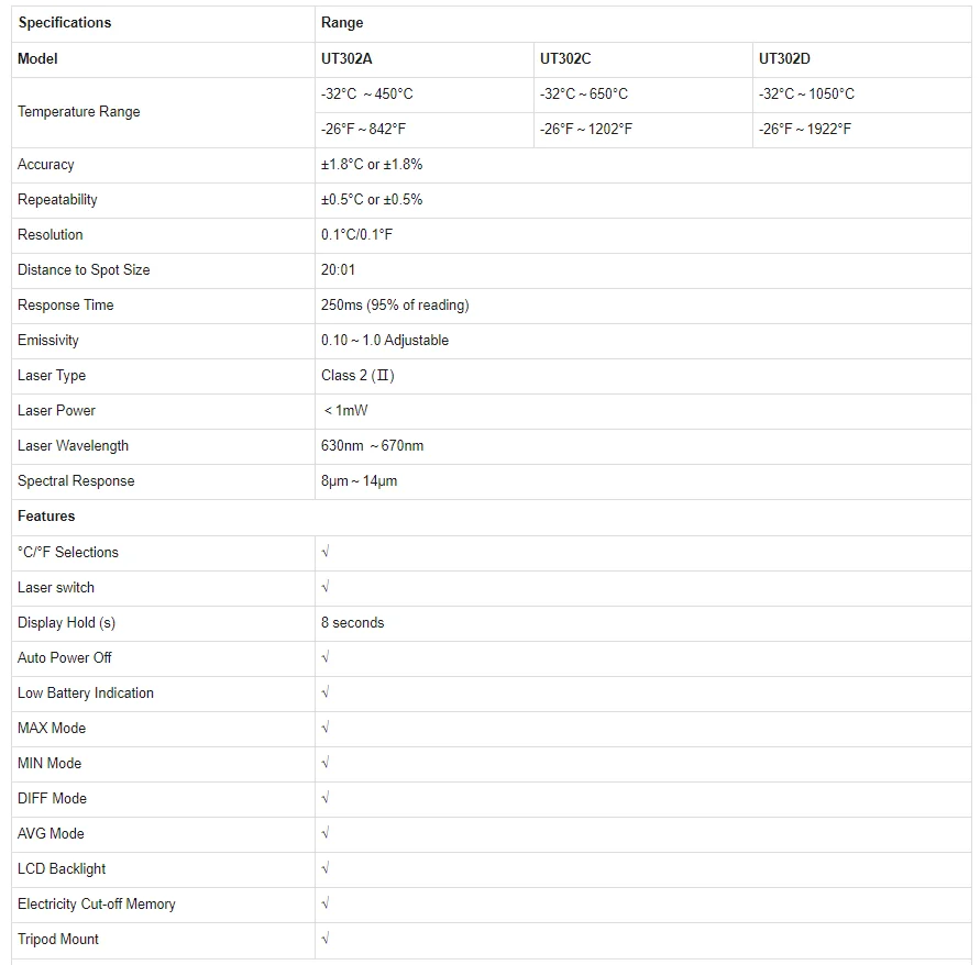 Бесконтактный инфракрасный термометр UNI-T UT300S, портативный лазерный термометр с ЖК-дисплеем, промышленный цифровой инфракрасный термометр