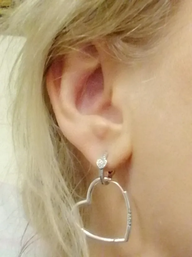 Будьте внимательны, что наконечник ушей находится на заостренной части сердца, поэтому вам придется слегка напрягать ухо, чтобы закругиться спереди, красиво, но прибыло 1 скрученный, который плохо закрывается, отклонение цены.