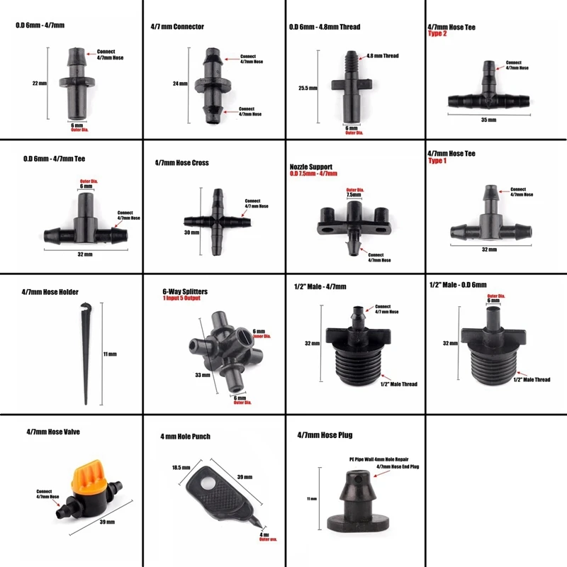 Соединители для садового шланга, 15 видов, 47 мм, 30 шт.