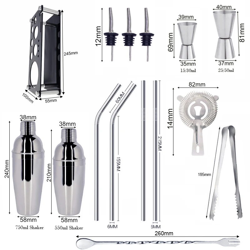 19 шт Нержавеющаясталь шейкер блендер бармен браузер комплект дома ...