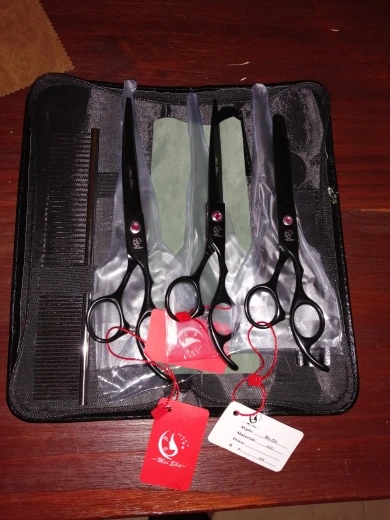Полученный товар понравился, соответствует описанию и фотографиям продавца. Продавец отправил товар быстро. Посылка была доставлена в магазин Пятерочка за 11 дней (РФ УФО). Каждый предмет из набора был упакован в индивидуальные пакеты/чехлы и вложены в пакет с дополнительной защитой, что исключило повреждение товара при транспортировке. Ножницы острые, удобно держать в руке. Рекомендую товар. Спасибо продавцу.