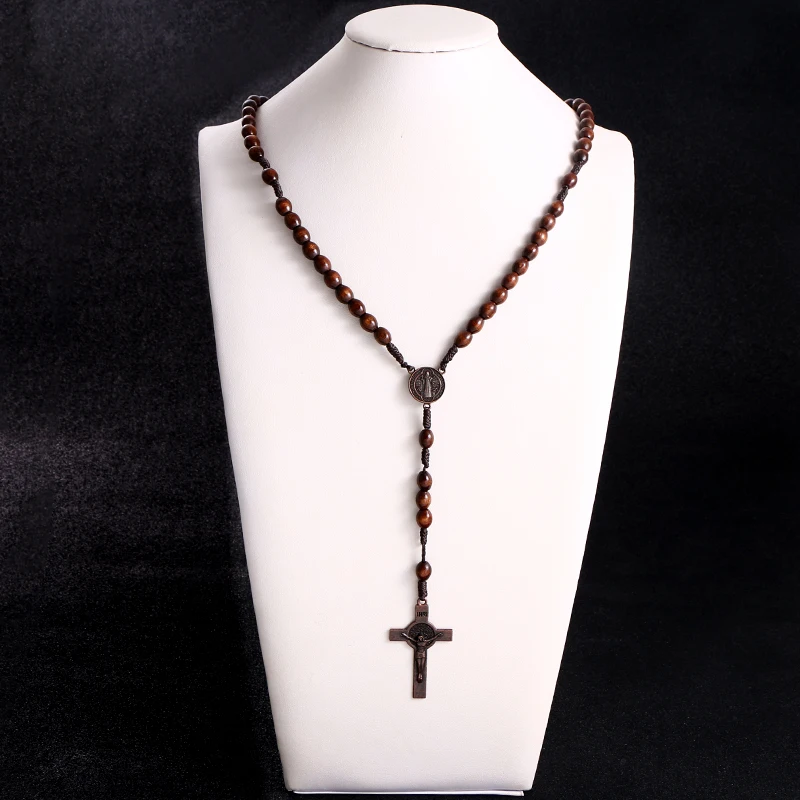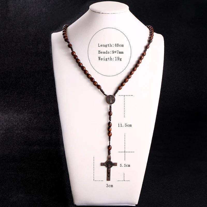 KOMi Христос Иисус деревянные бусины 8 мм четки бусины крест кулон плетеная веревочная цепочка ожерелье религиозные православные молитвенные украшения R-192