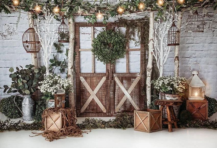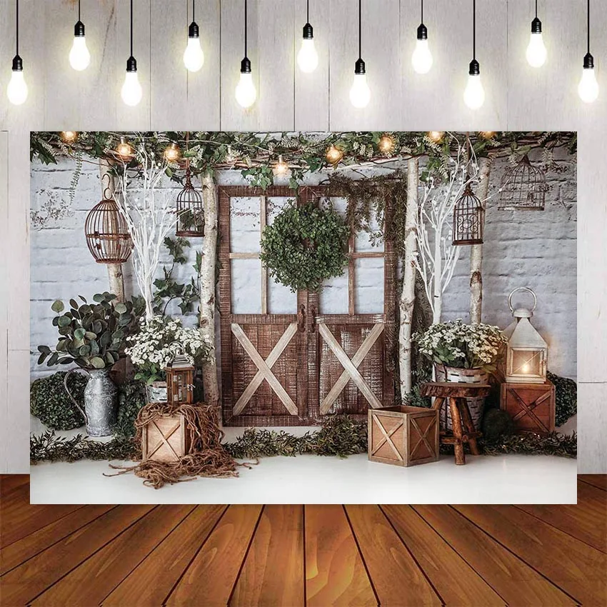 Фон для фотосъемки Mehofond Весенняя деревенская коричневая деревянная стена дверь блестящая светильник птичья клетка детский Портрет фон для фотостудии реквизит