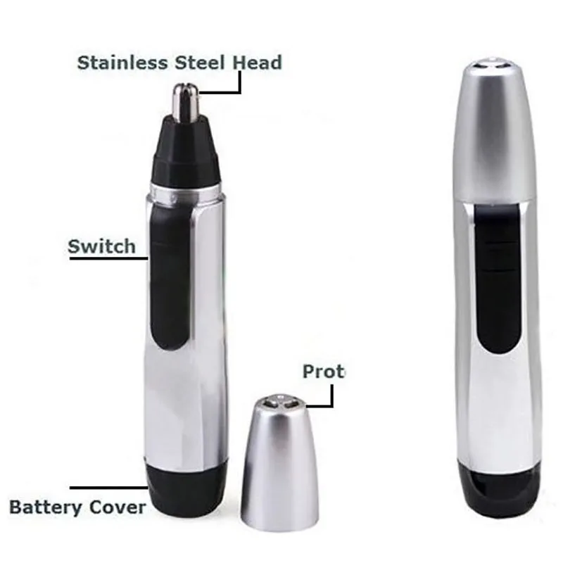 Особенности:Трехмерный арочный сегмент, без повреждения носовой полости.Предназначен для обрезки ушных волос и волос в носу.Вращение на 360 градусов, может захватывать длинный нос в любом направлении.Водонепроницаемый дизайн, влажная или сухая чистка и санитарная.Изогнутое, гипоаллергенное и лезвие из нержавеющей стали.Небольшой и легкий дизайн, отлично подходит для путешествий.Описание:Прозрачная крышка для защиты лезвия, длительный срок службыРезиновый переключатель включения/выключения, удобный и безопасный.Технические характеристики:Мощность: сухой тип батареи, покупателям нужно иметь 5-ю батарею.Материал: пластик и металлРазмер: 25x130 мм
