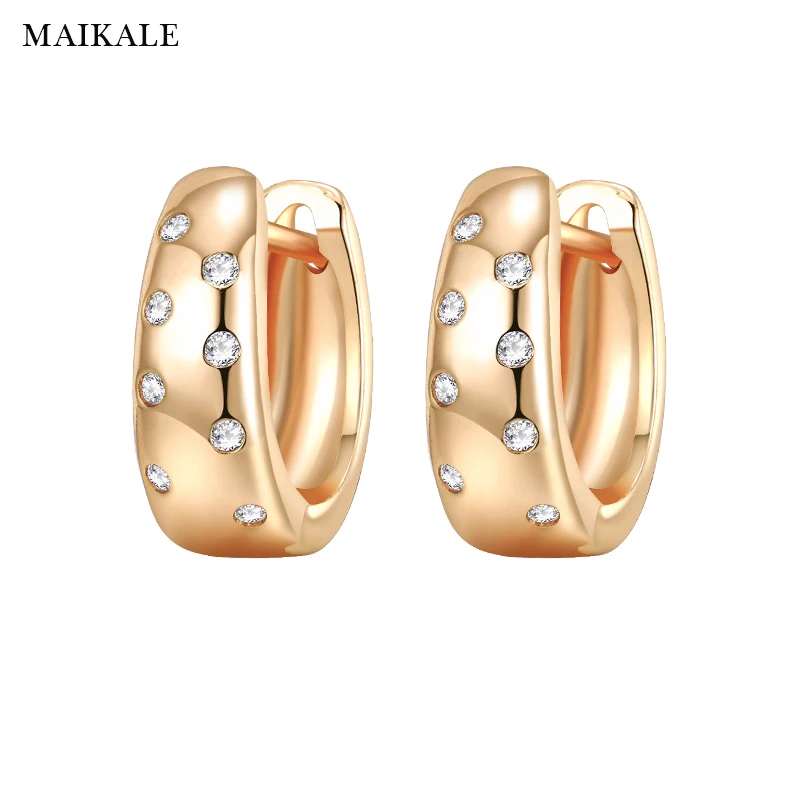 Женские круглые серьги MAIKALE, золотистые серьги с микроинкрустаци...